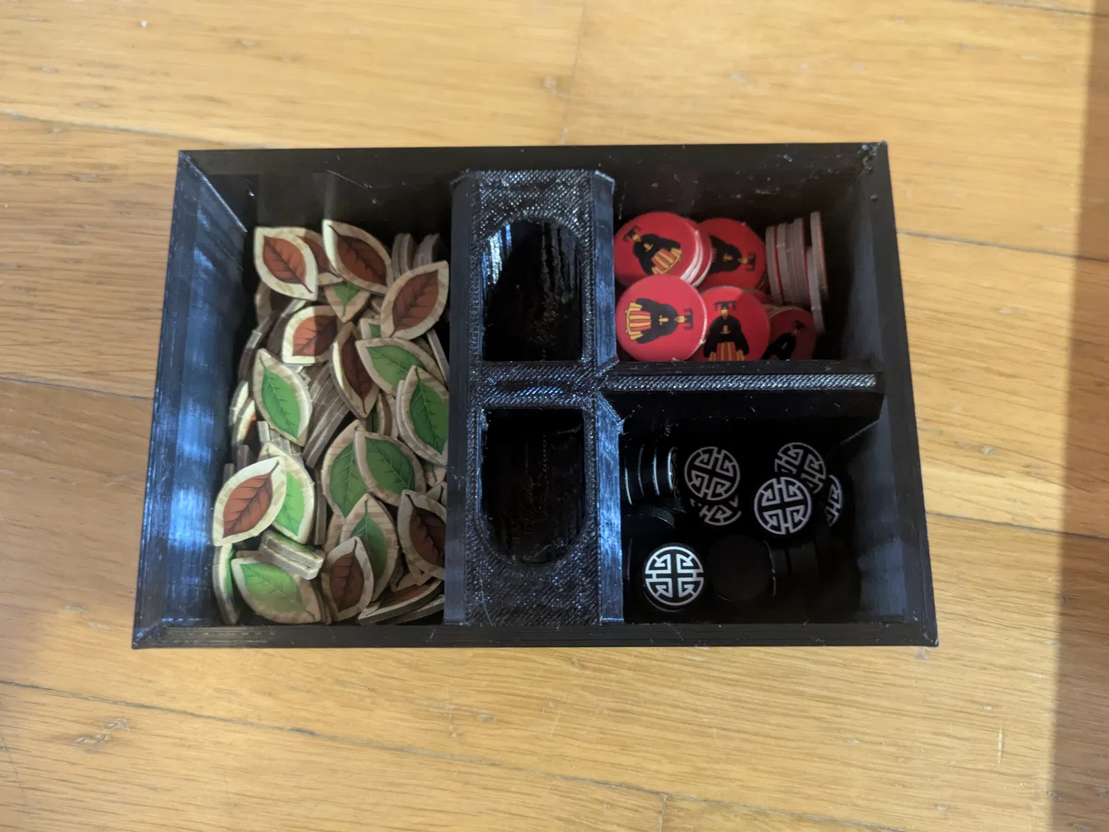 Insert fan-made cho board game Čajová zahrada (Tea Garden) kèm expansion Puerh, giúp sắp xếp gọn toàn bộ component vào hộp gốc. Tối ưu in Prusa Mini hoặc máy có vùng in tối thiểu 15×15×6 cm.