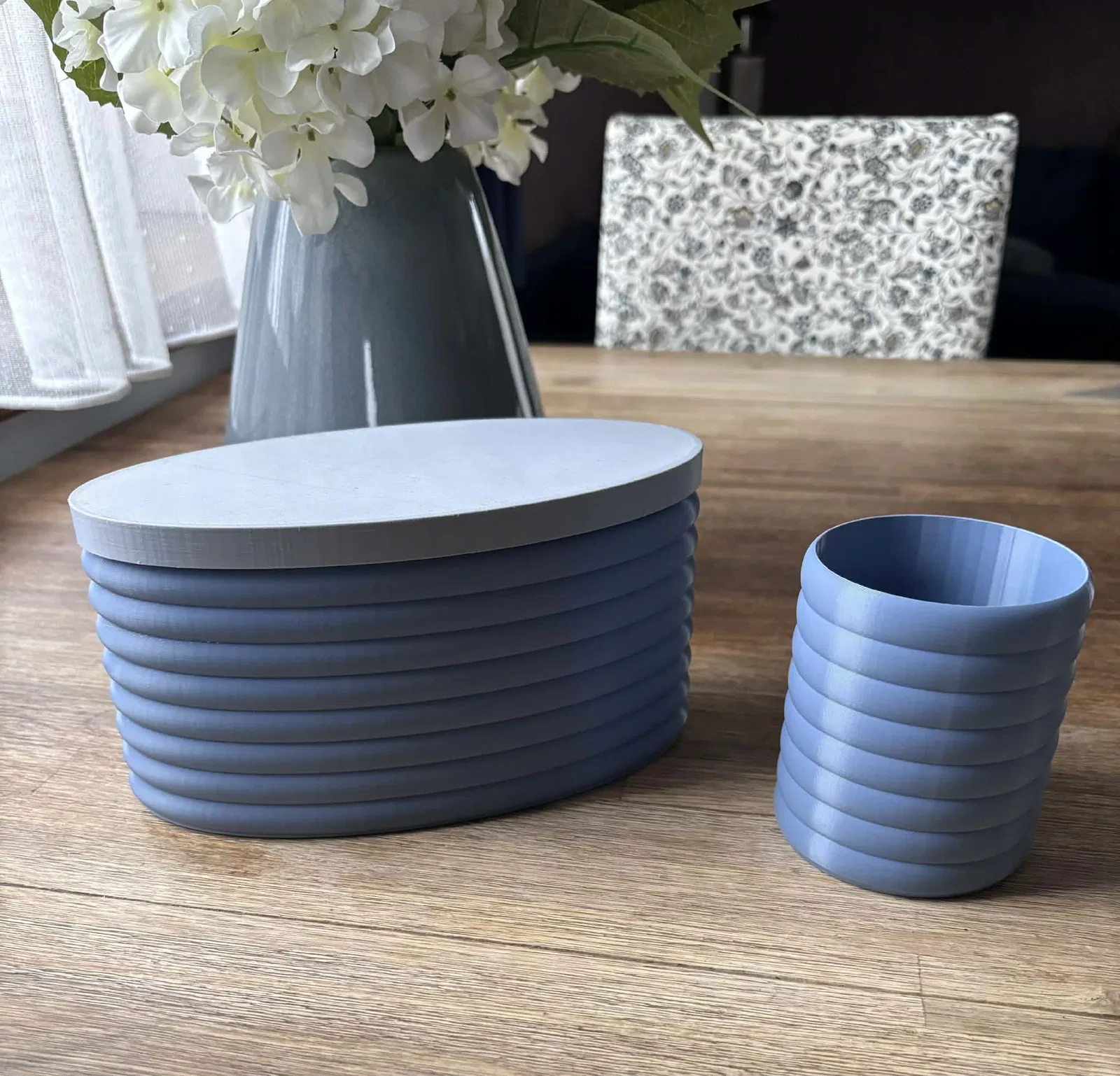 Hộp / organizer oval cỡ lớn có nắp bản lề (thân và nắp được in riêng, sau đó ráp lại bằng ngàm snap) (20 x 10 x 10,4 cm; w x d x h)