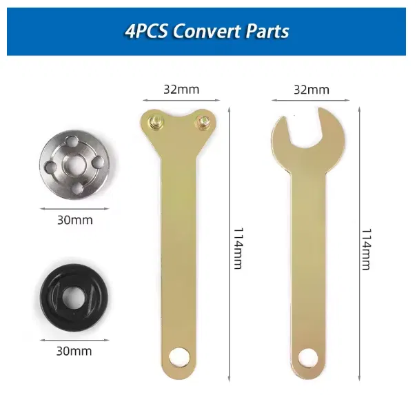 Bạn cần: Saw blade connecting rod 8mm to outer M10, 4 pcs Convert Parts, và lưỡi 60mm có lỗ 16mm.