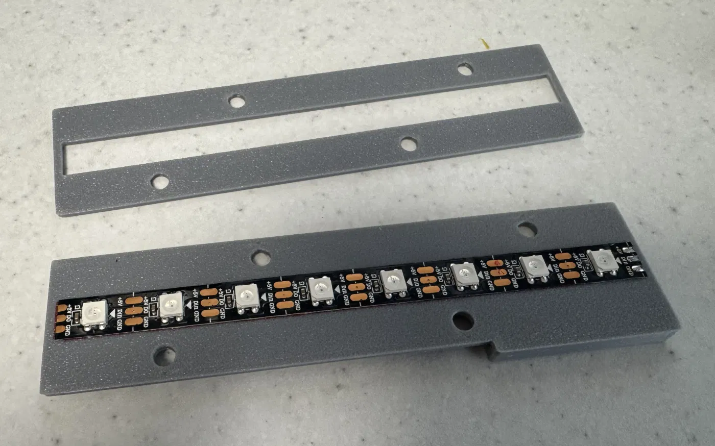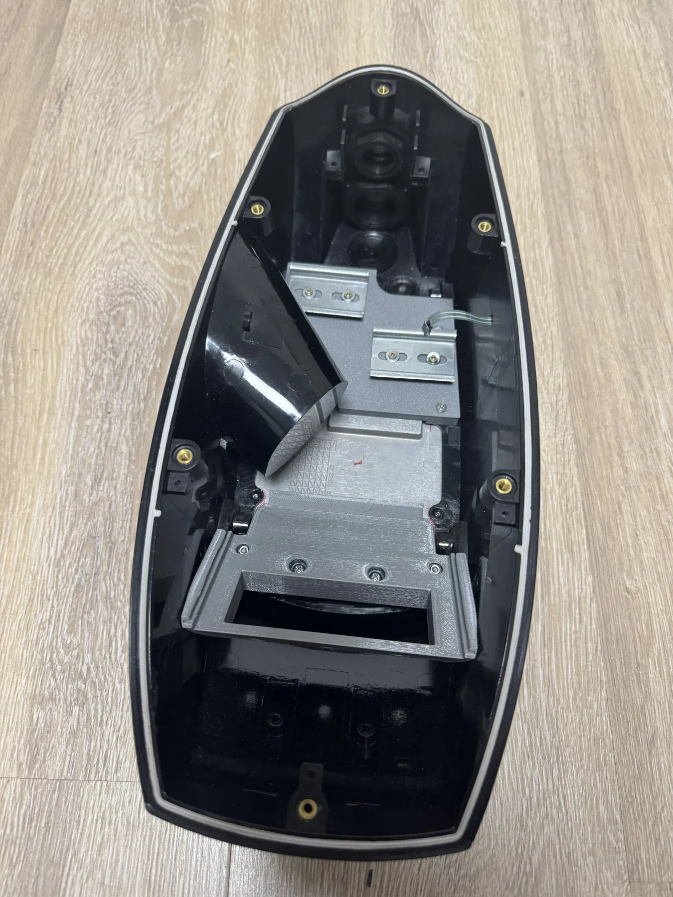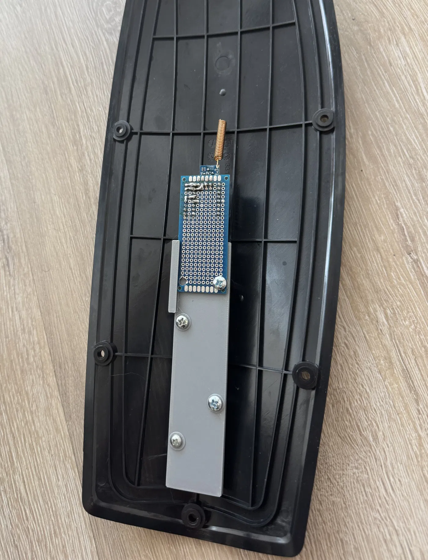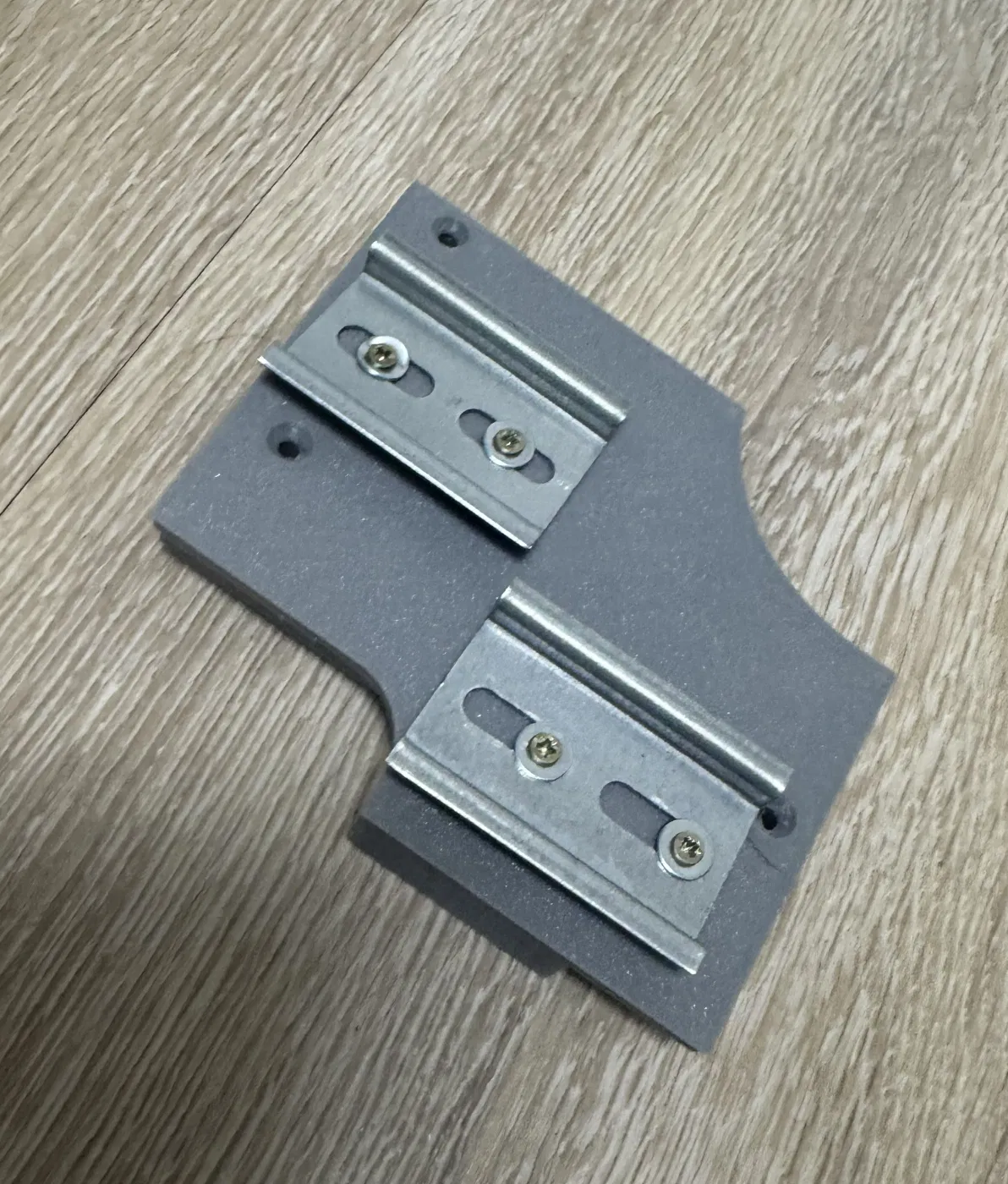 Để cố định bo mạch và các món gắn DIN rail, bạn cần in 3D các chi tiết này. Giá đỡ bo mạch được siết xuống đáy hộp tại đúng các lỗ ốc nguyên bản, nhưng dùng vít M3 và M4 dài hơn. Giá đỡ DIN rail cũng bắt tương tự bằng vít M3.