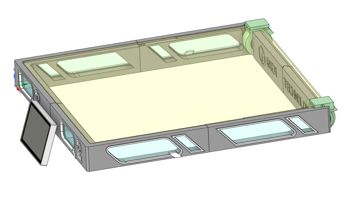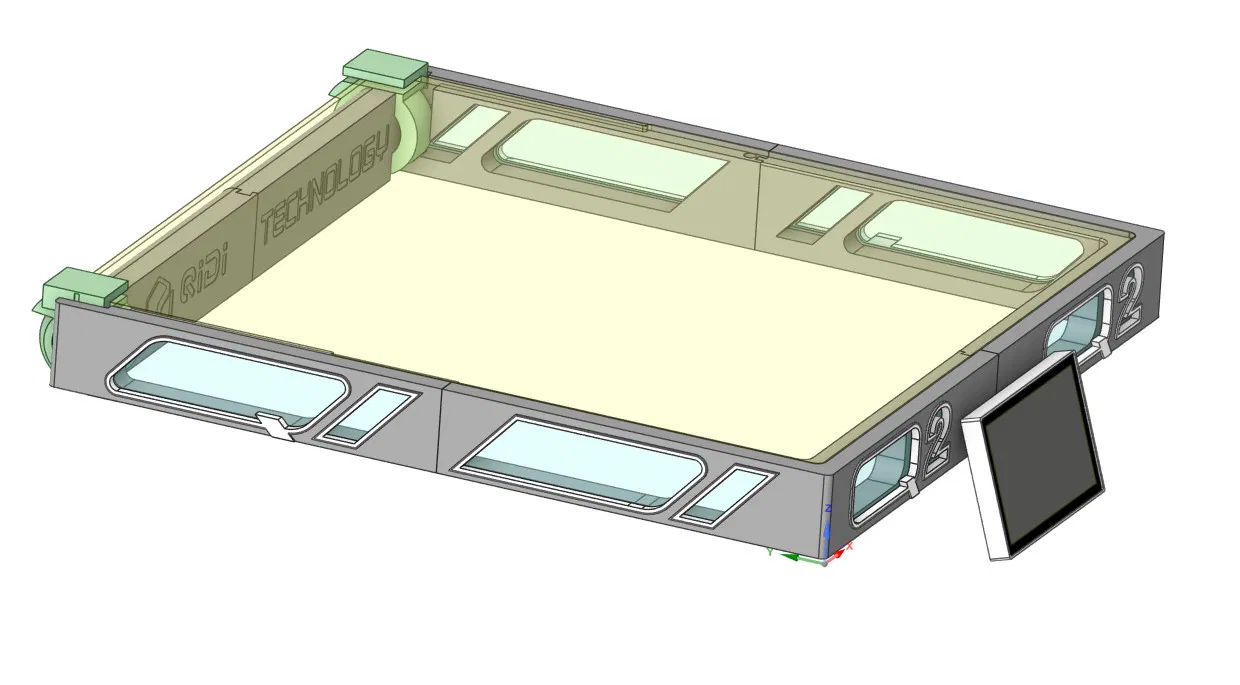 Raiser cho máy in 3D Qidi Q2, chiều cao 45mm. Kính vẫn trượt như bản stock và có thể nâng 90° (không khuyến nghị in khi nâng). Lắp bằng 2 vít nắp trên và dùng lại vít vận chuyển; cần mica theo rãnh có sẵn.