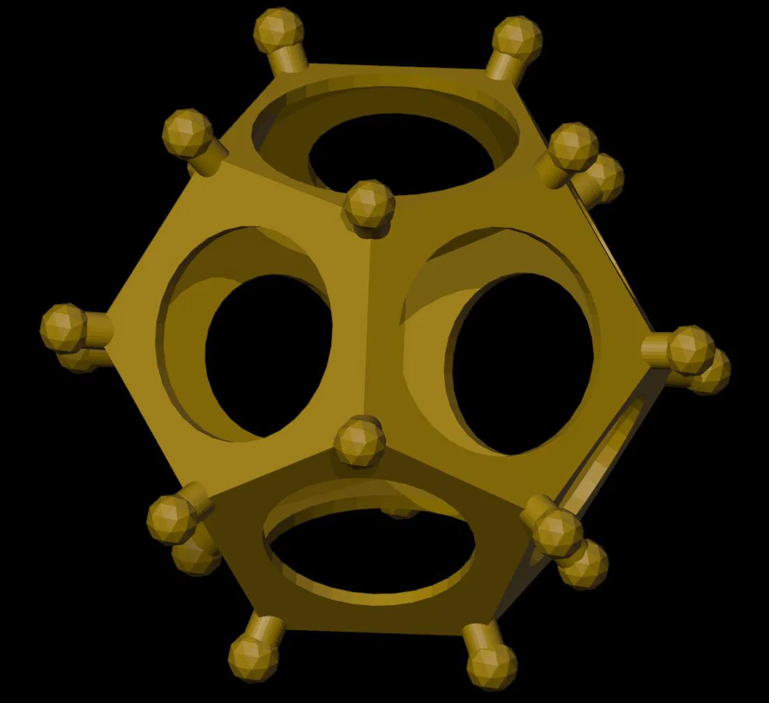 Một biến tấu từ “Roman dodecahedron” để làm găng tay: in 75mm cho trẻ em, 90mm cho người lớn. Các lỗ nhỏ dần theo chiều kim đồng hồ giúp tạo 4 size găng tay tay phải; tay trái thì mirror hoặc lộn trái.