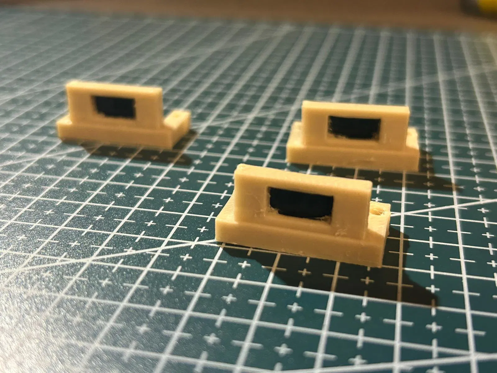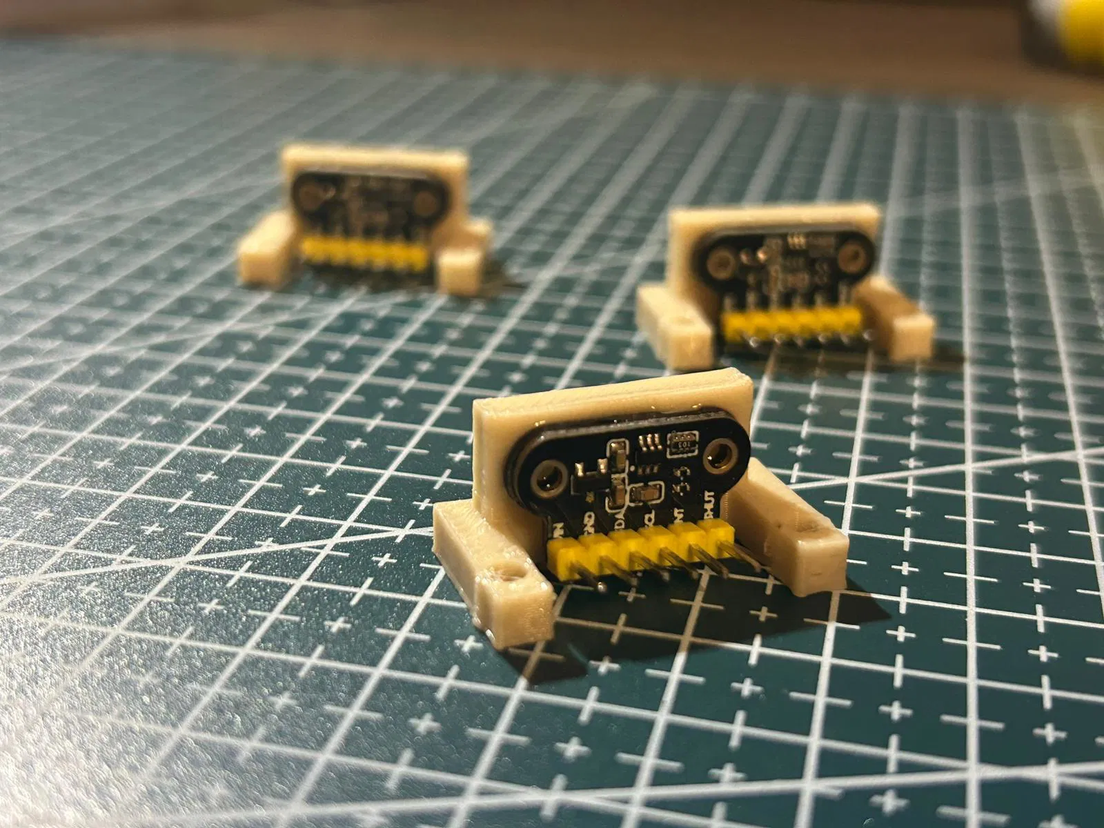 Cảm biến có thể gắn lên mount bằng keo cyanoacrylate (CA) hoặc bằng cách heat-staking (nung chảy các chốt nhựa).