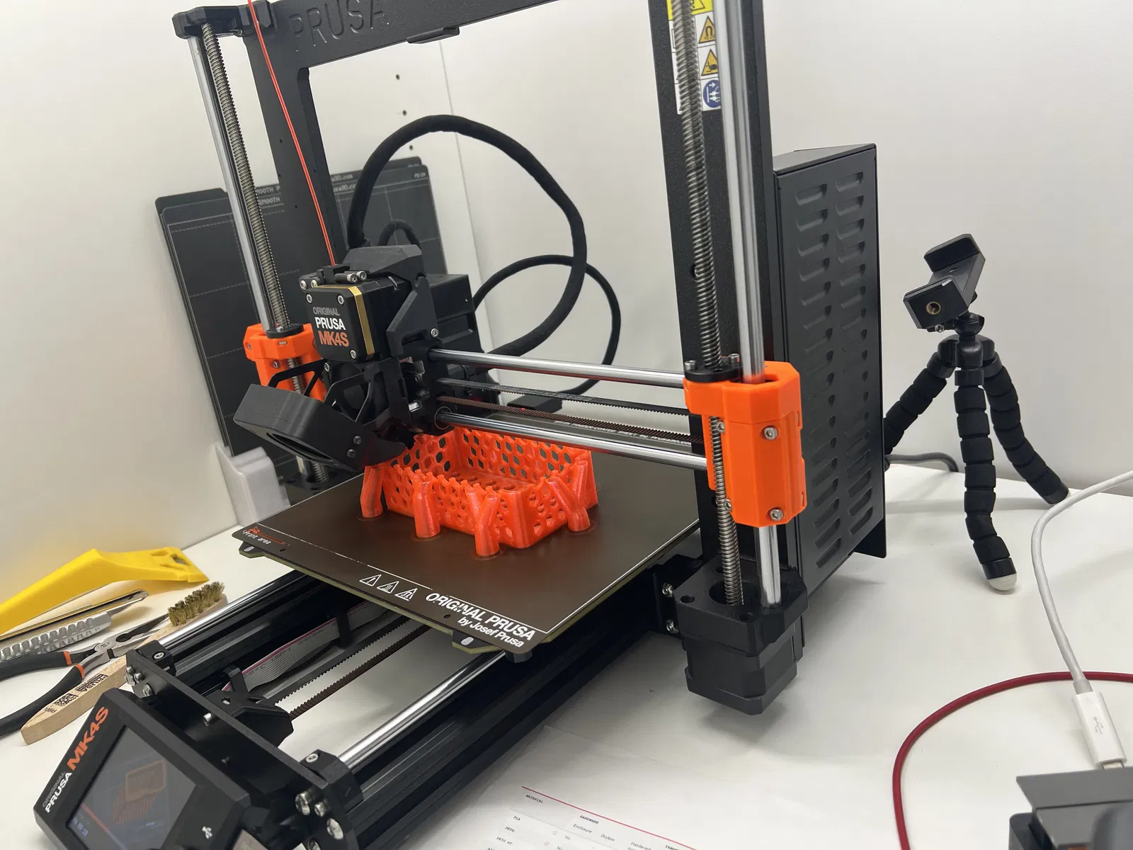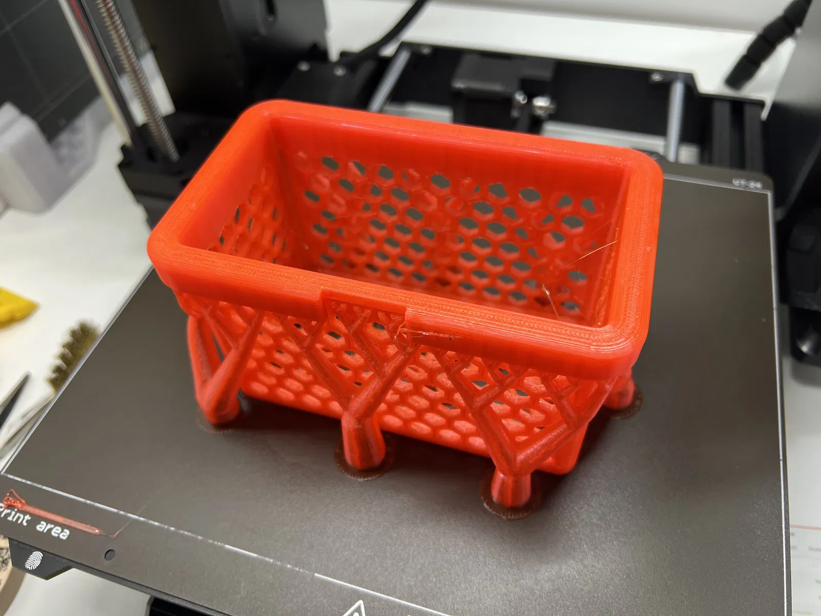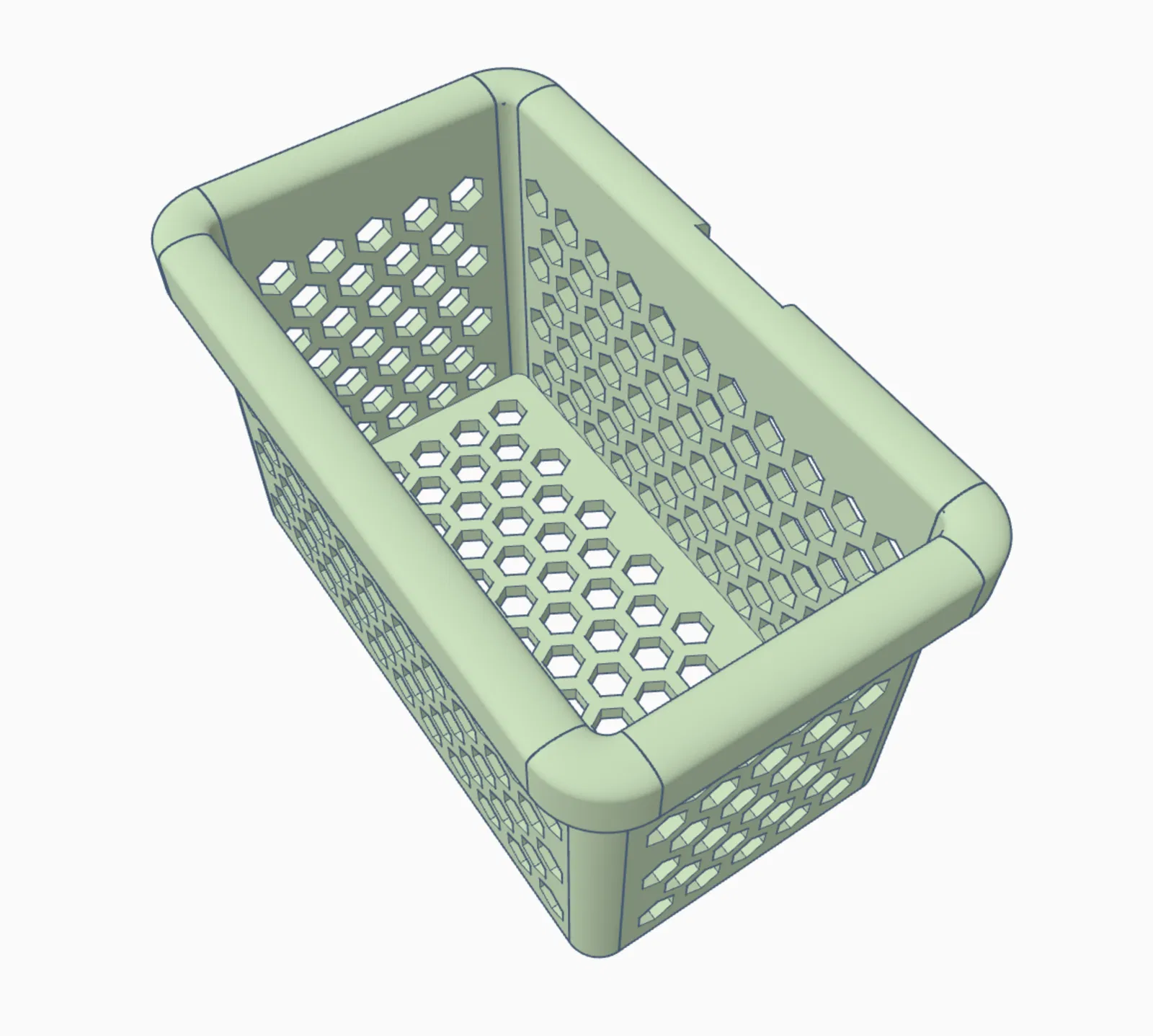 Giỏ nhỏ tiện dụng, ôm khít quanh kệ/giá giấy vệ sinh Action dùng giác hút. Thiết kế gần như không cần support, dễ in; hiện đã thử với PETG.
