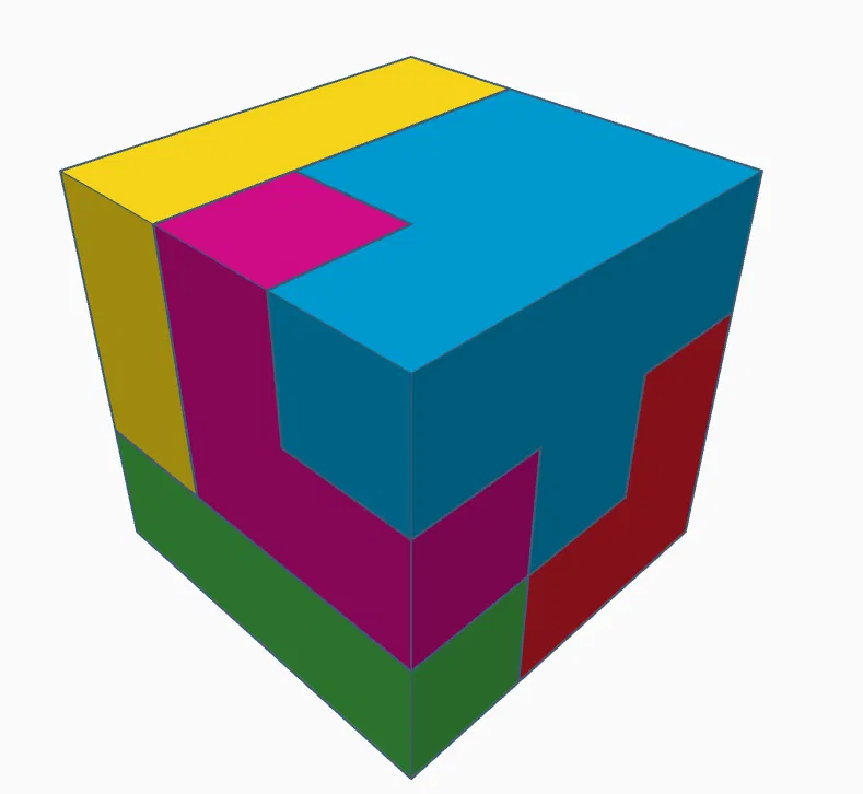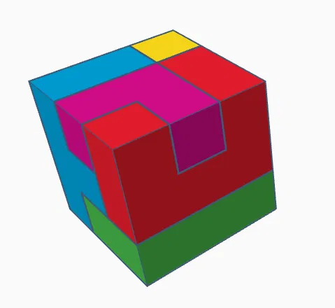 Đây là một khối cube gồm 5 mảnh, có thể lắp/giải theo nhiều cách khác nhau; mỗi tấm hình là một cách để giải.