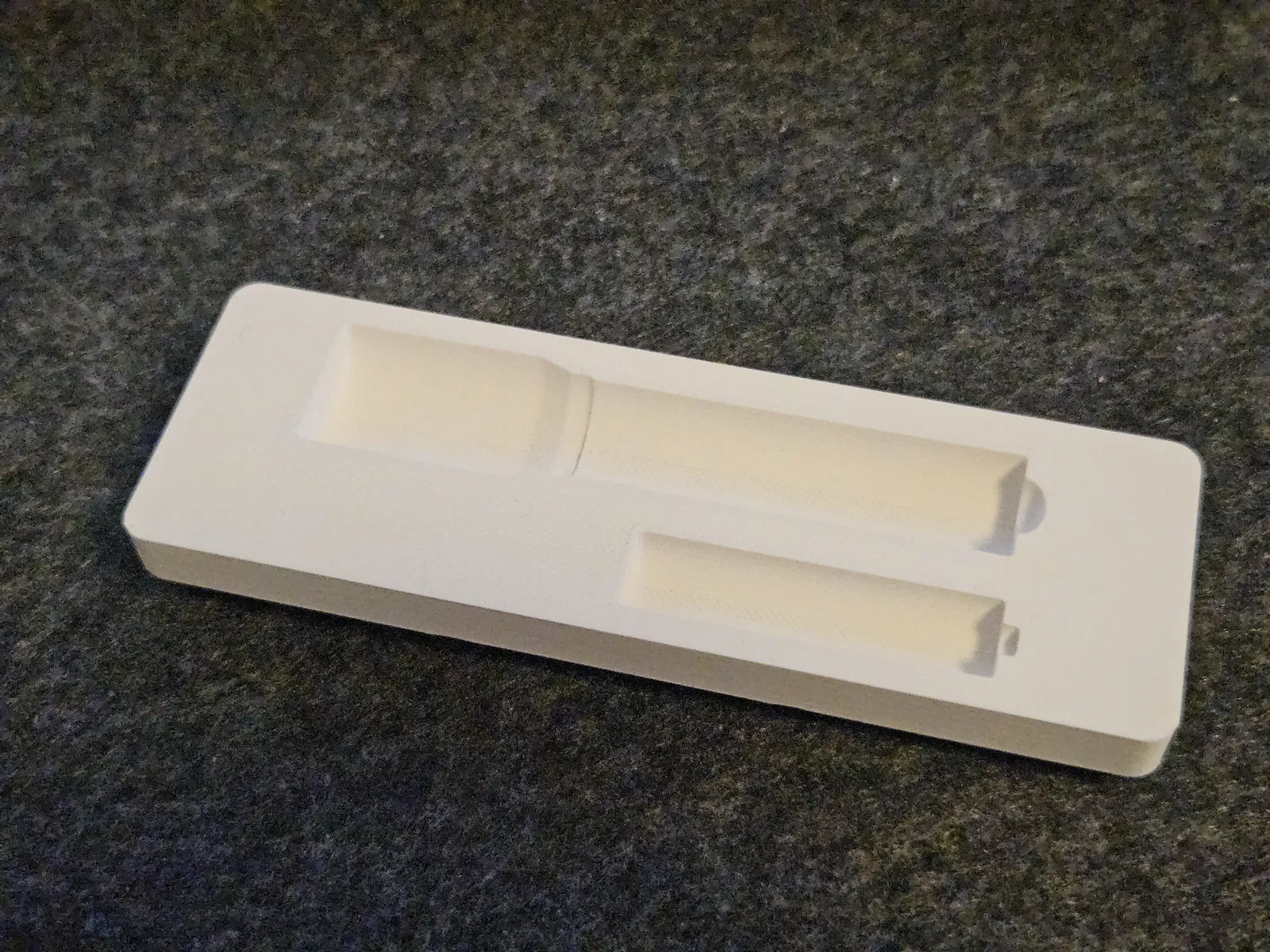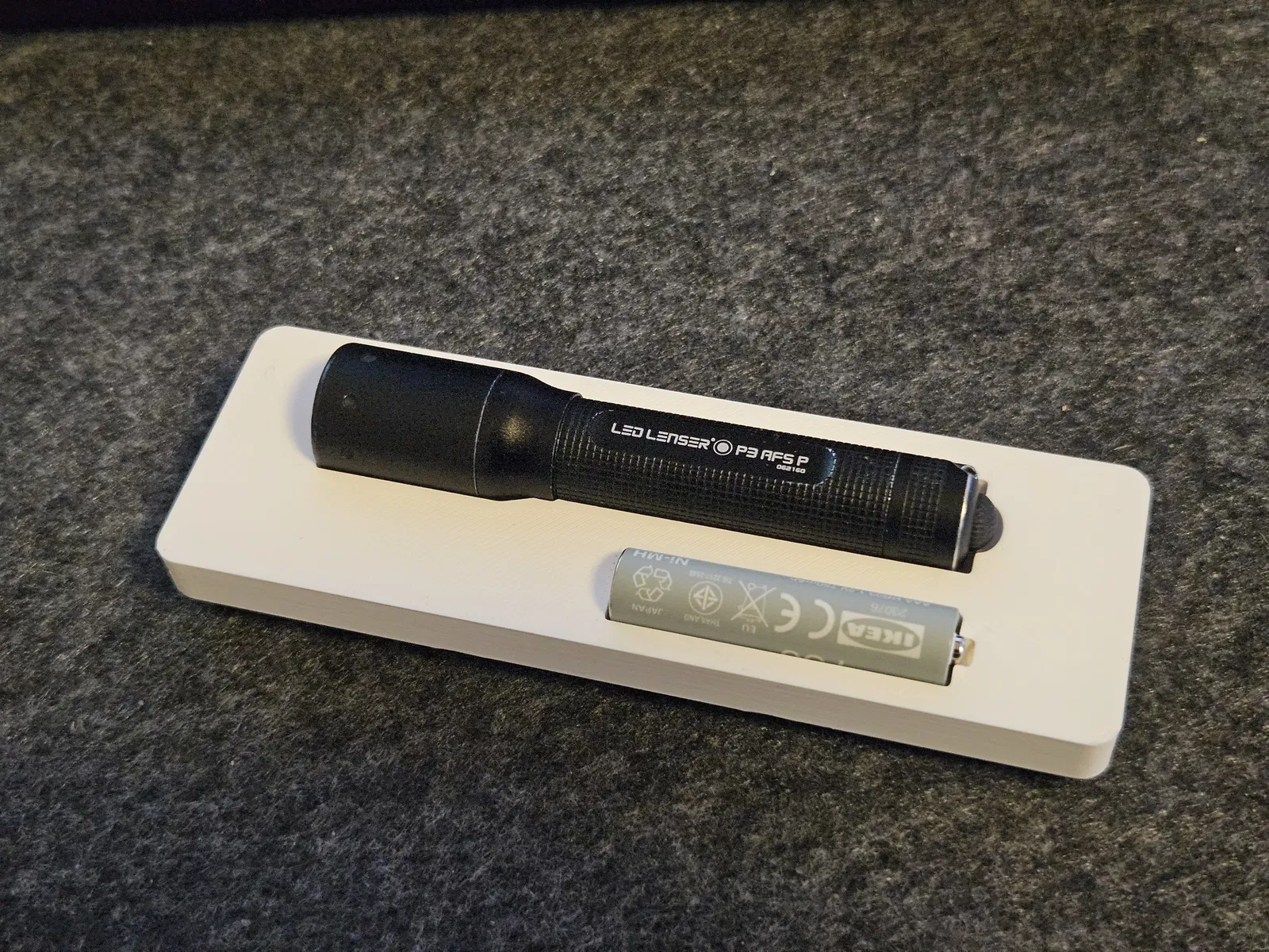 Đây là một khay Gridfinity dành cho đèn compact Led Lenser P3 AFS và kèm chỗ để 1 viên pin AAA dự phòng.