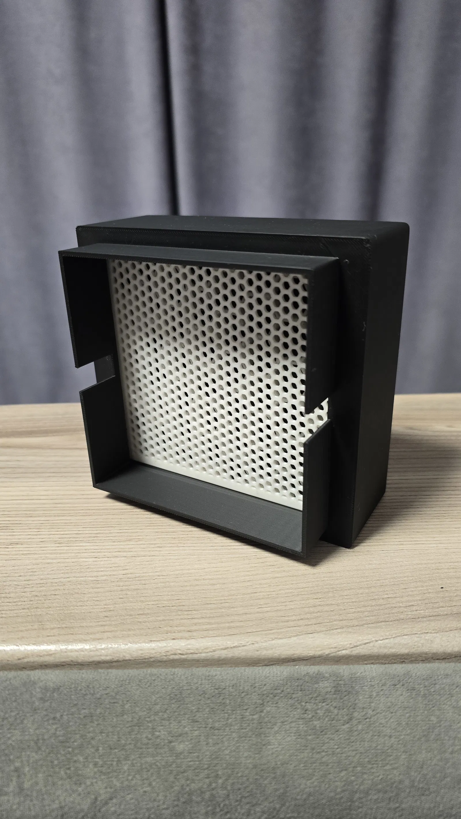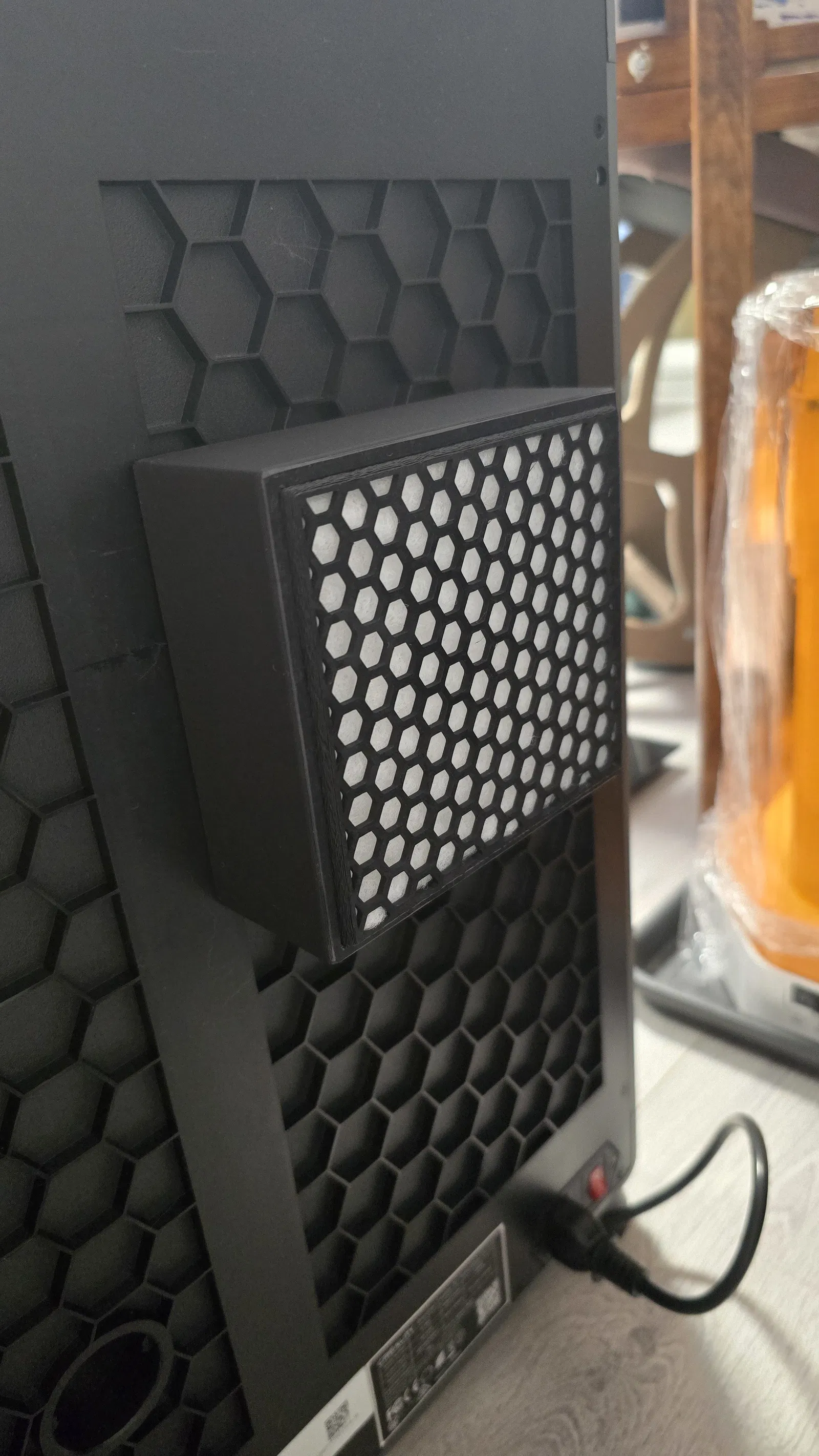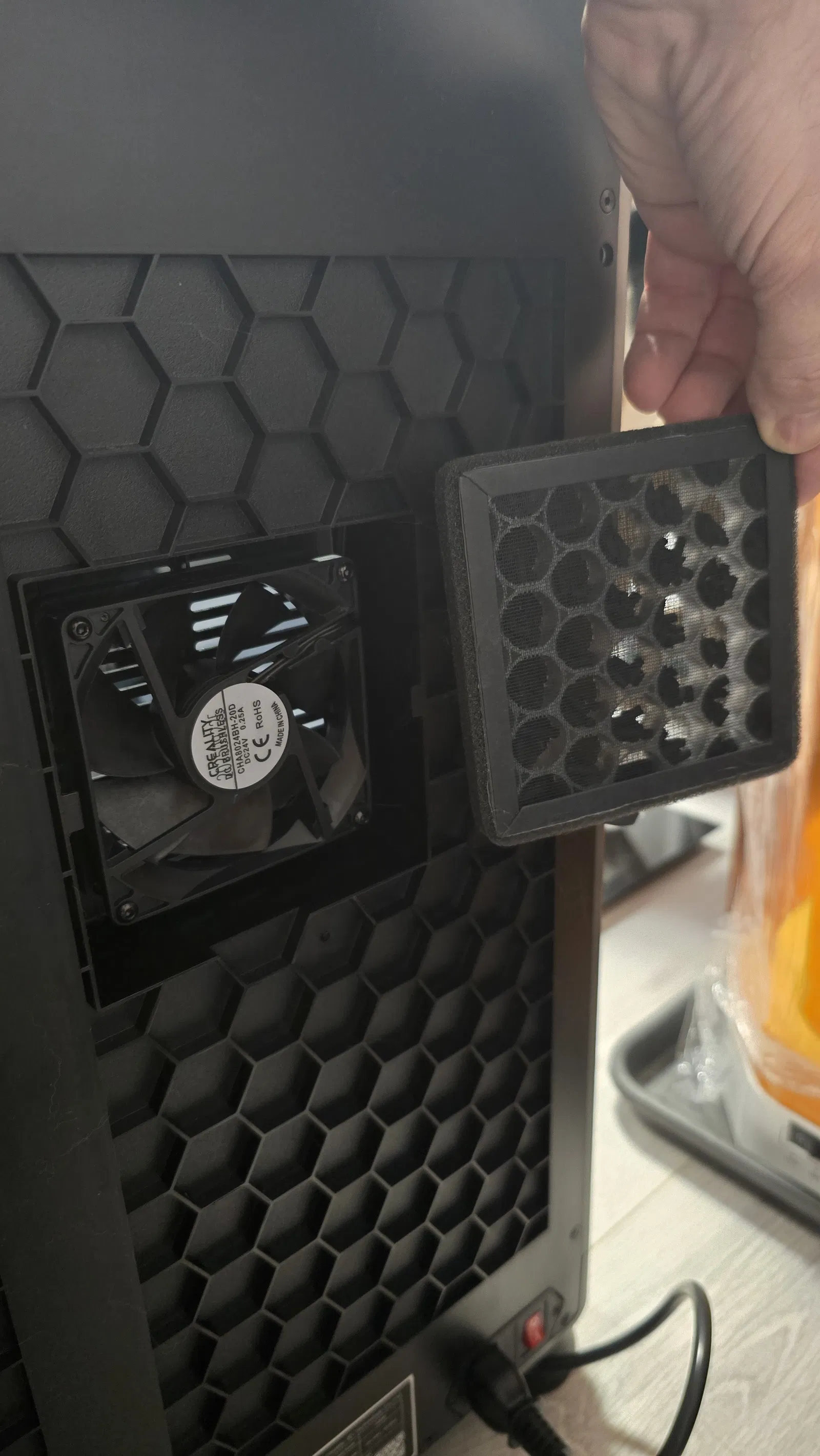 Mẫu bộ lọc xả cho Creality K1 Max dùng than hoạt tính dạng pellet kết hợp lọc HEPA. Có thể dùng vật liệu lọc không khí tiêu chuẩn hoặc thay bằng hepa filter iLife V8/V8s theo link.