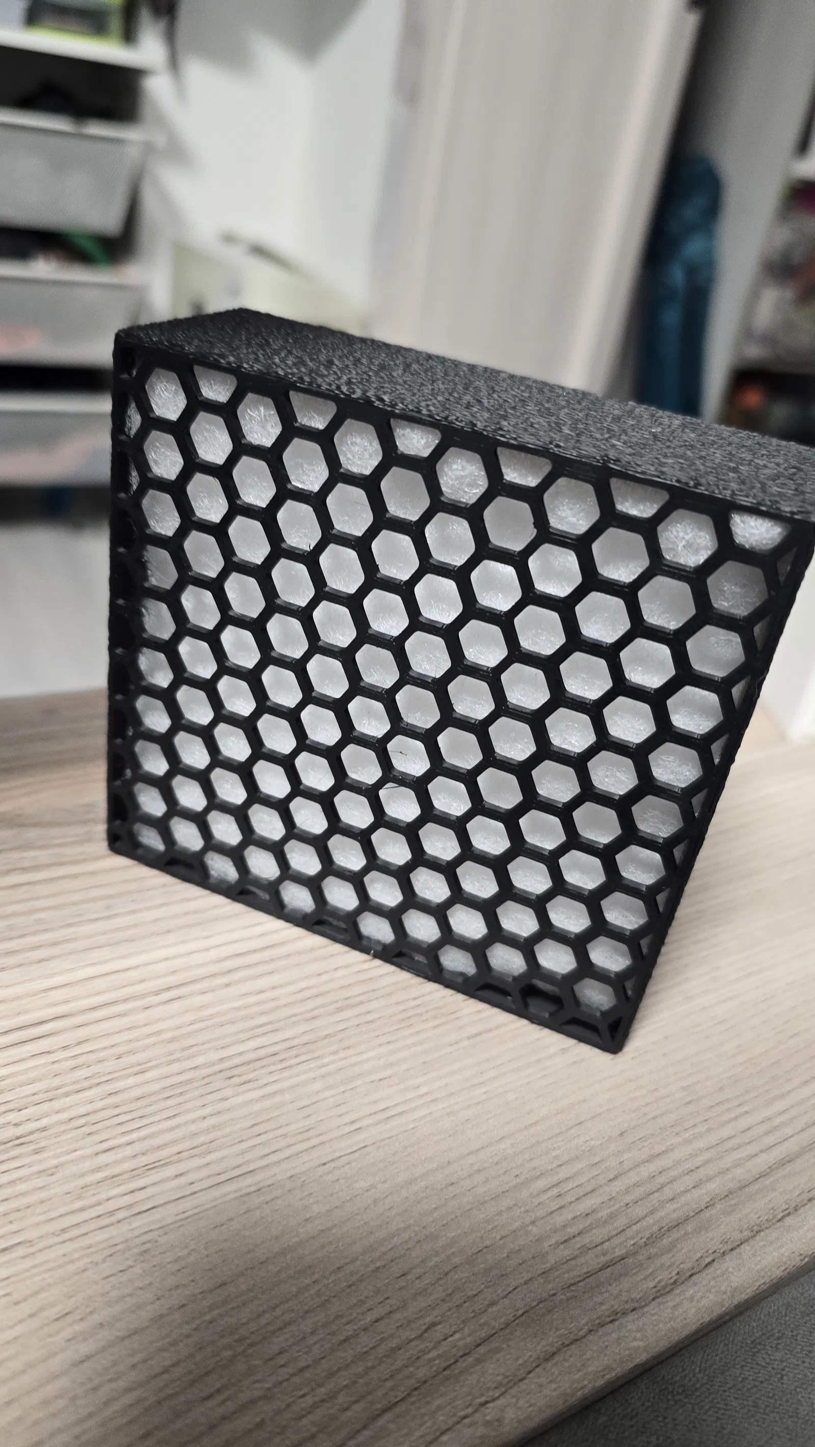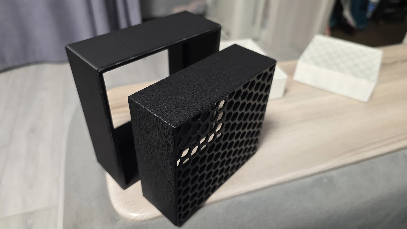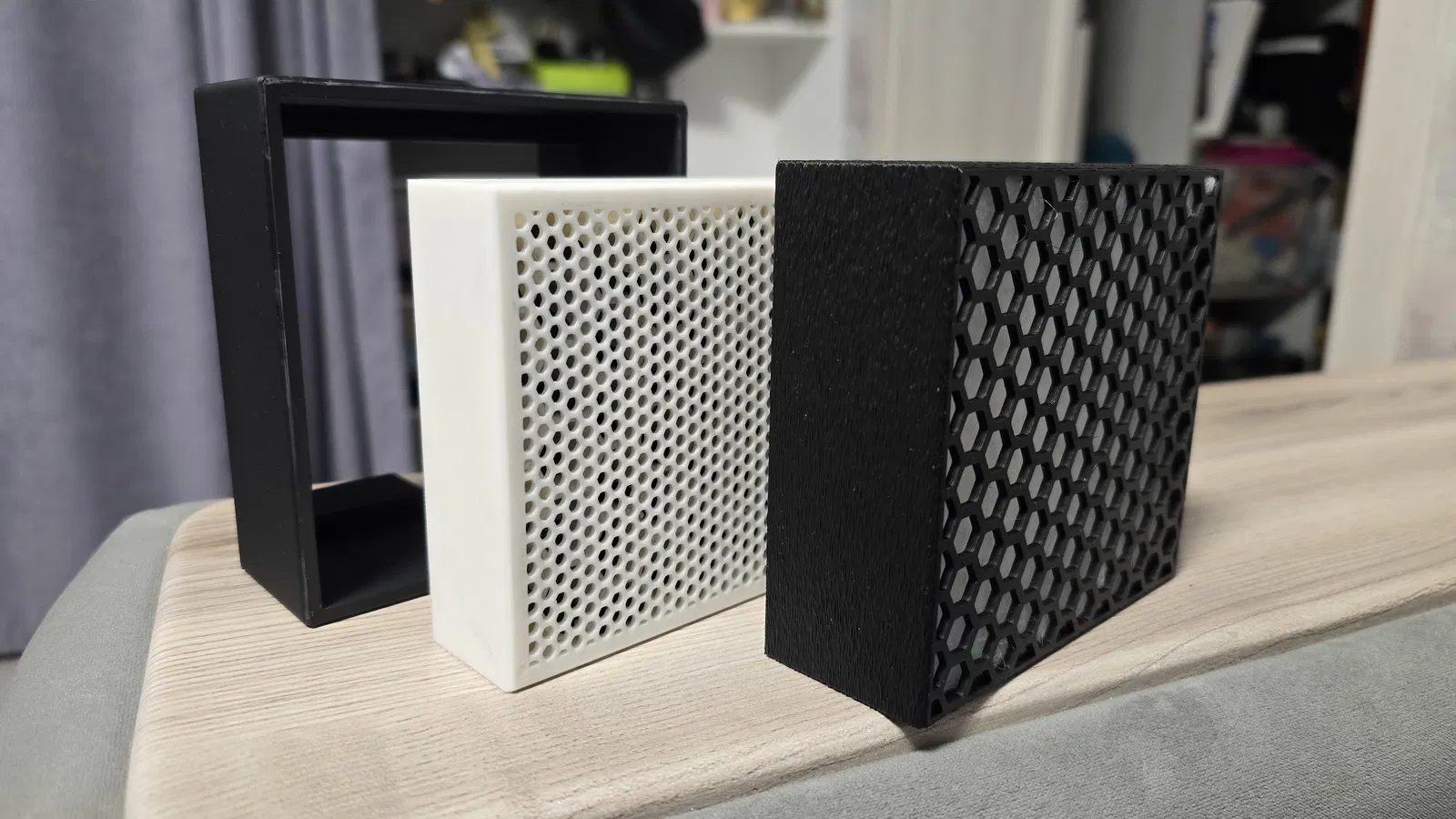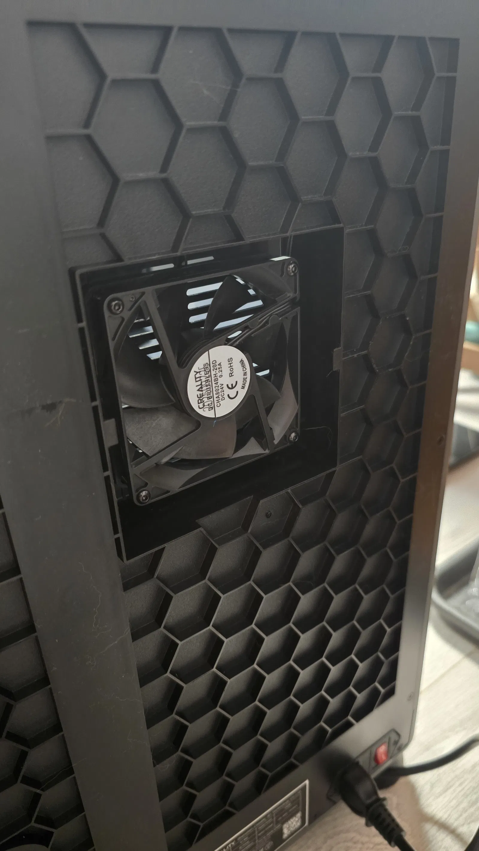 Mẫu bộ lọc xả cho Creality K1 Max dùng than hoạt tính dạng pellet kết hợp lọc HEPA. Có thể dùng vật liệu lọc không khí tiêu chuẩn hoặc thay bằng hepa filter iLife V8/V8s theo link.