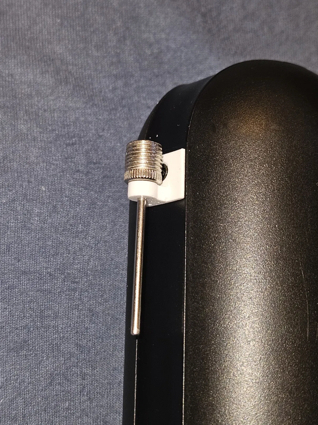 Giữ kim bơm bóng (ball needle) cố định trên bơm điện Cyplus A2 bằng một giá đỡ nhỏ gọn. Lắp bằng con ốc zin của bơm, giúp cất kim chắc chắn, gọn và tiết kiệm chỗ ngay trên thiết bị.