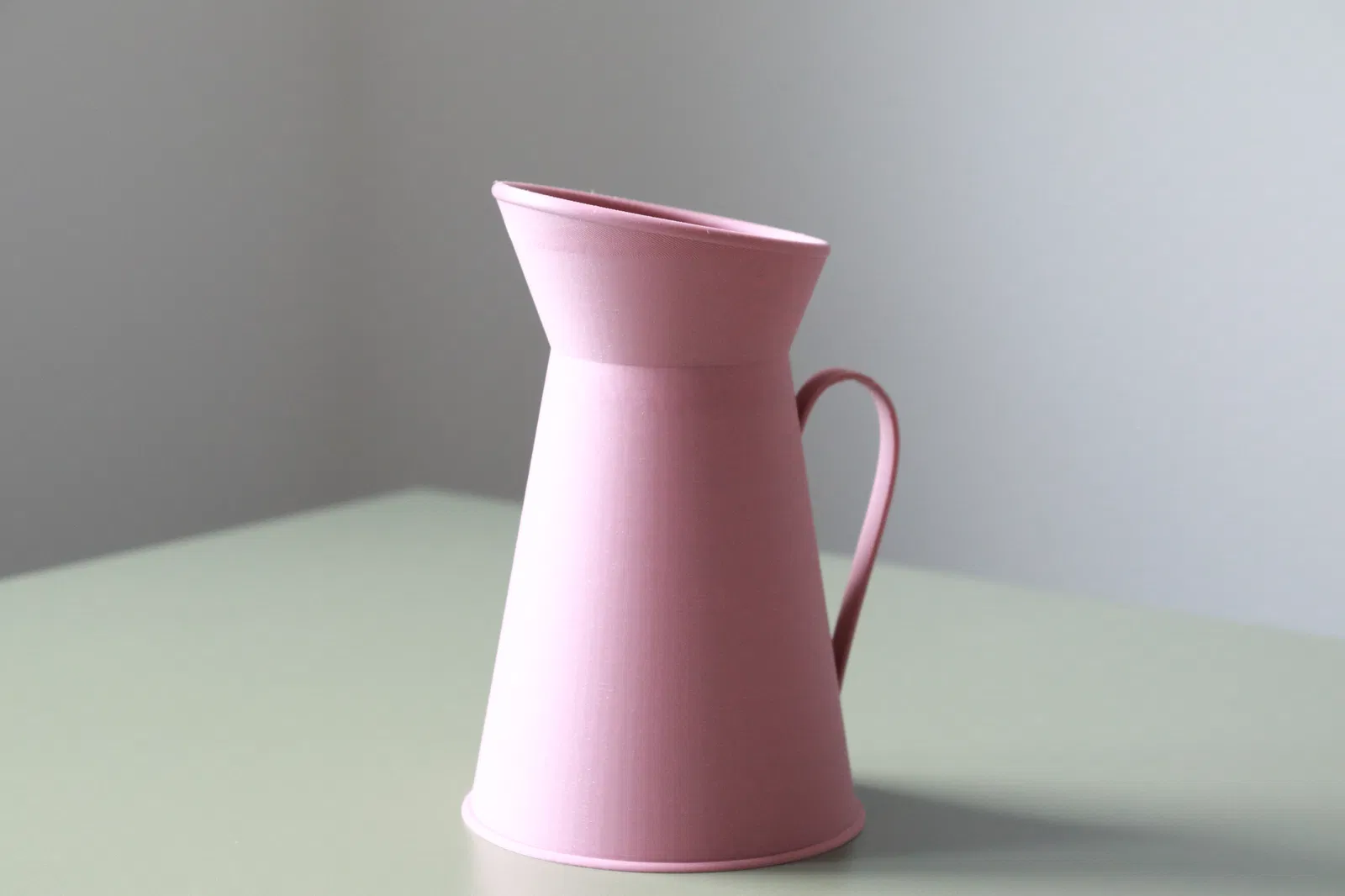 Bình pitcher in 3D print này mang thiết kế kiểu farmhouse cổ điển, với miệng loe và tay cầm cong. Dáng bình jug truyền thống giúp nó trở thành món decor linh hoạt, hợp với không gian nội thất phong cách đồng quê (country-style) và vintage.