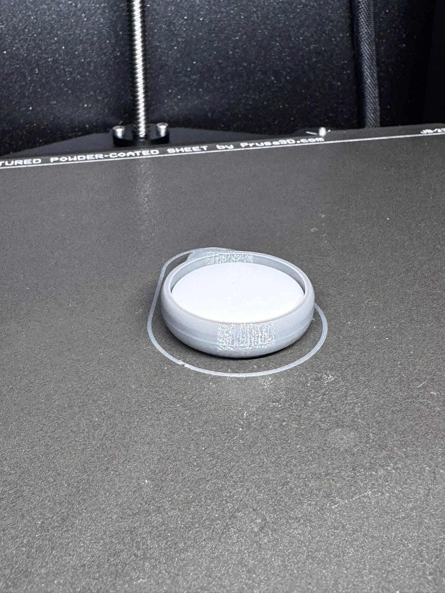 Bạn pause bản in, đặt AirTag vào, rồi resume in — các lớp trên sẽ đóng kín lại vĩnh viễn.