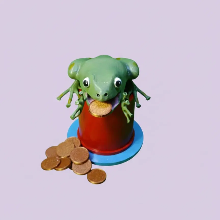 JUEGO “DE LA RANA” là trò ném đòi hỏi độ chính xác: cố gắng ném đủ số ficha (thường 10) vào miệng ếch. Mẫu in 3D đầy đủ chức năng, có thông số in PLA, nozzle 0,4 mm, layer 0,2 mm.