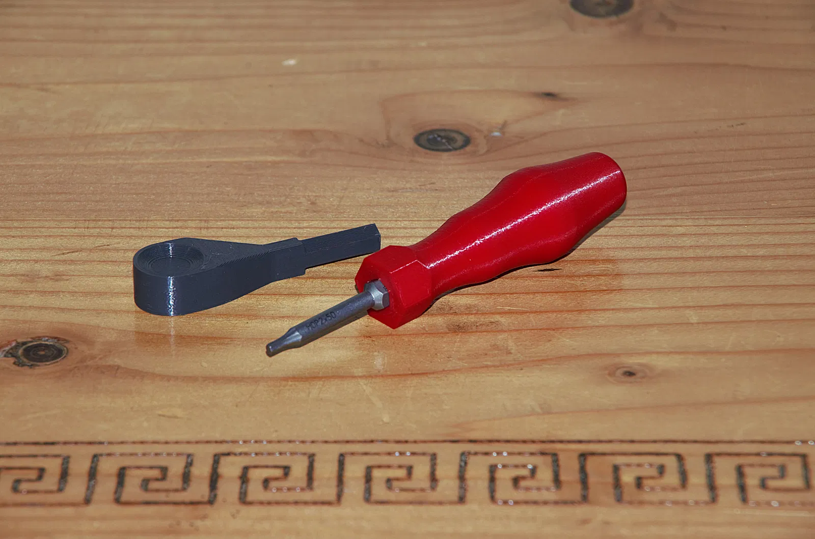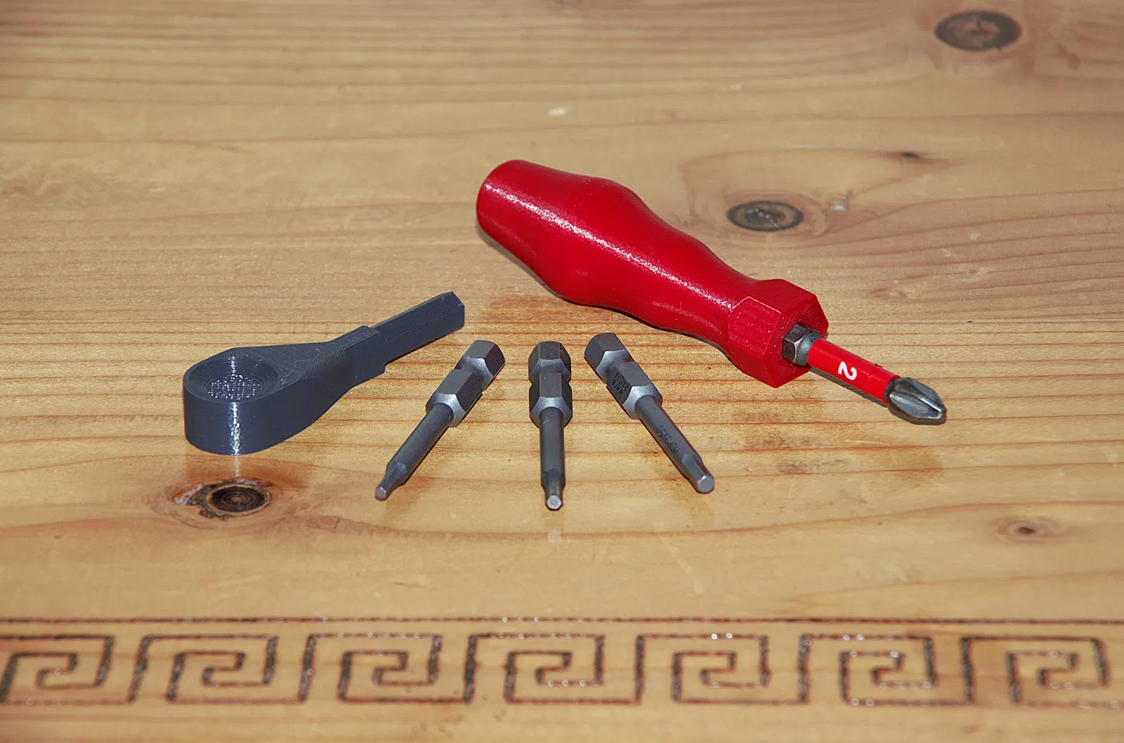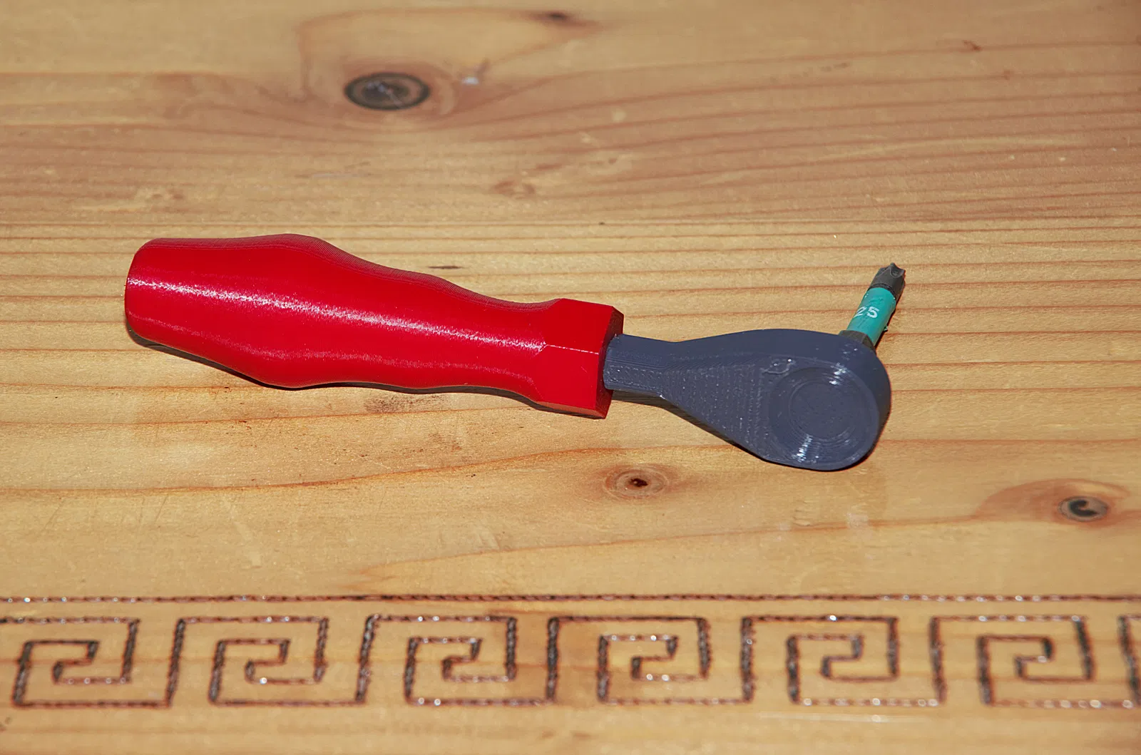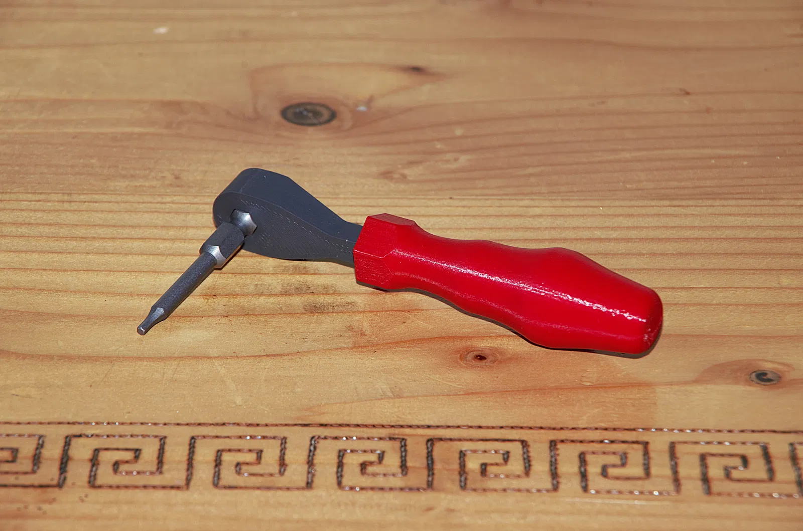 Tay cầm/đầu giữ bit mini có thể thay đổi góc, dùng cho bit dài 50mm. Gợi ý thông số in: phần grip layer 0.2 với infill 60%, phần angle layer 0.15 với infill 100%.