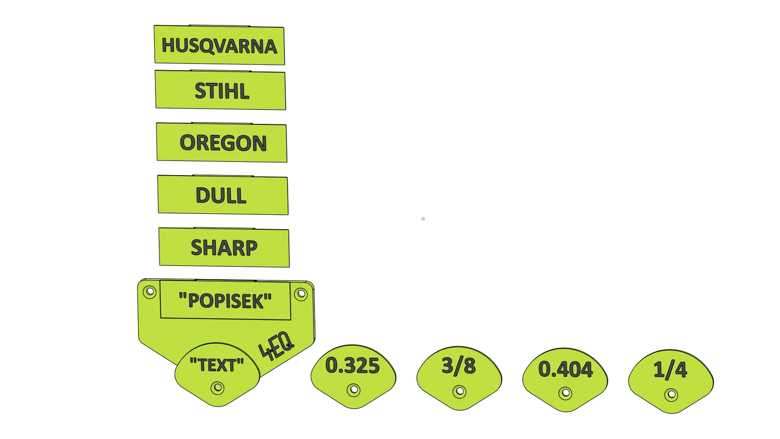Milí tiskaři, lesáci, chtěl jsem mít pilové řetězy přehledně uložené a jasně označené, tak jsem navrhl tento držák. Držák má vyměnitelné popisky, jako je výrobce řetězu, rozměr nebo informace, jestli je řetěz ostrý nebo tupý. Máte tak vždy přehled, po kterém sáhnout.