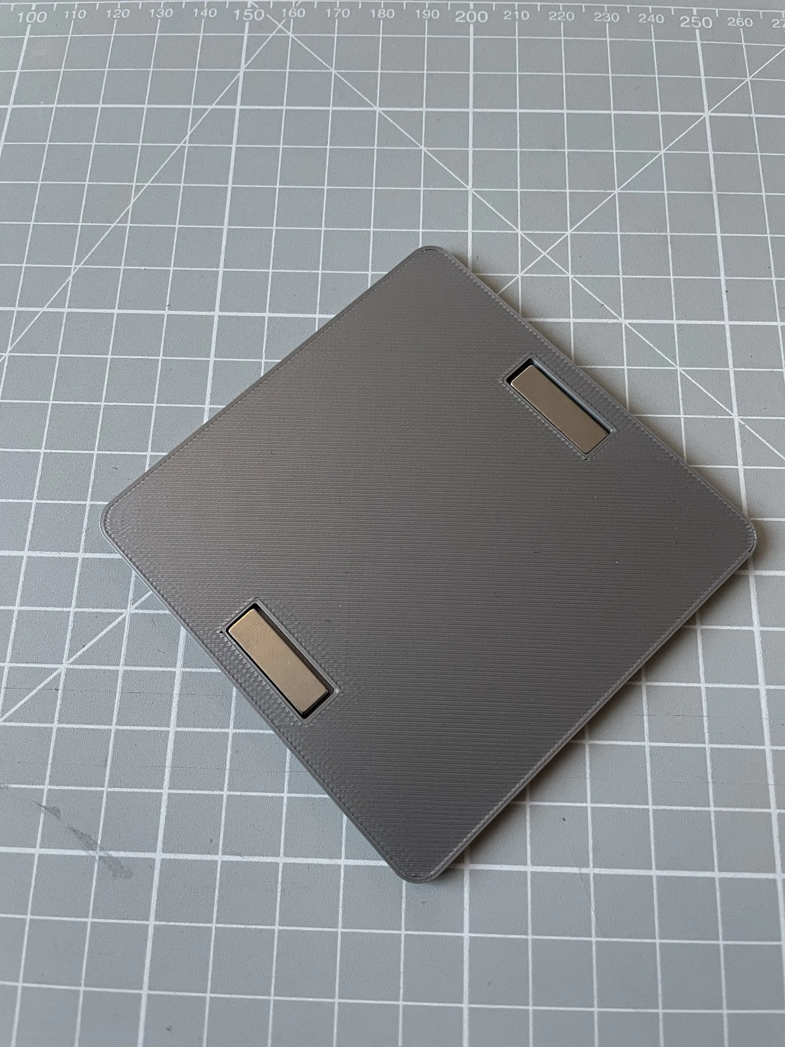 Giá đỡ nam châm tối giản để gắn công tắc không dây MOES lên cửa tủ lạnh. Dùng 2 nam châm neodymium 20x6x1.5mm, dán bằng băng keo hai mặt và nhung tự dính.