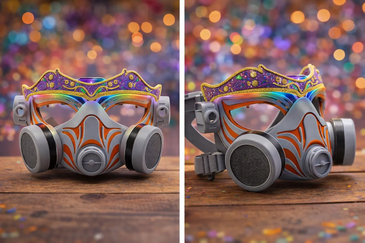 Máscara Carnaval Anti Vírus là một mẫu mặt nạ độc đáo, kết hợp giữa tính bảo vệ và phong cách trong một thiết kế cực kỳ ấn tượng. Lấy cảm hứng từ ánh sáng lấp lánh và nguồn năng lượng của lễ hội carnaval, mẫu này hòa trộn các chi tiết trang trí rực rỡ với một vẻ ngoài hiện đại, cứng cáp.