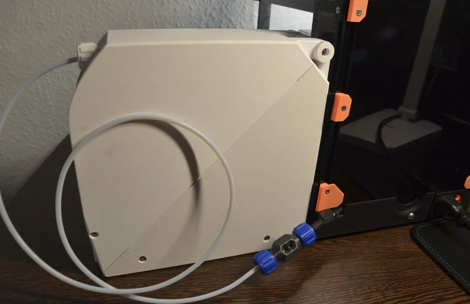 Đầu nối này không cần thêm bất kỳ phần cứng nào và dùng để nối các ống Bowden của bạn lại với nhau. Nhờ cơ chế của nó, bạn có thể gắn/tháo ống chỉ bằng cách vặn nhẹ nắp vặn một chút. Nếu bạn cần chỉnh sửa cho đúng nhu cầu sử dụng của mình, bạn cũng sẽ tìm thấy file .step để tải về