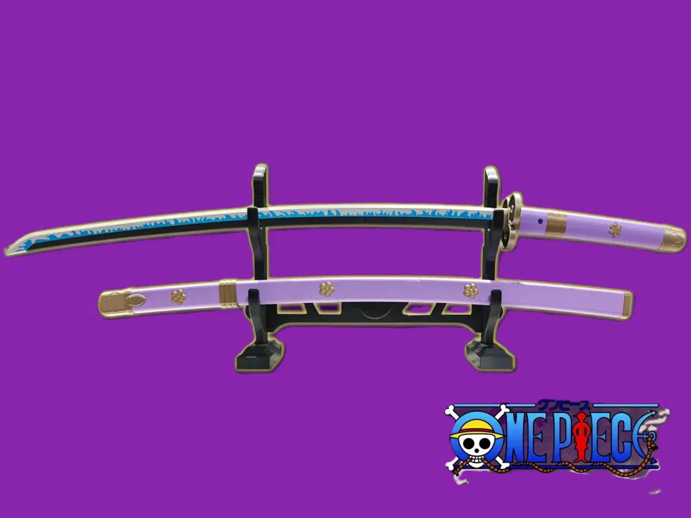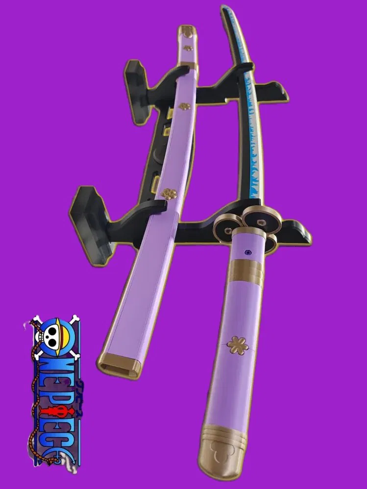 Replica 3D tỉ lệ 1:1 thanh katana Enma của Roronoa Zoro (arc Wano – One Piece). Lưỡi xanh pattern lửa, cán tím hoa văn mạ vàng, kèm bao kiếm đồng bộ. Model chia phần, tối ưu để in đẹp.