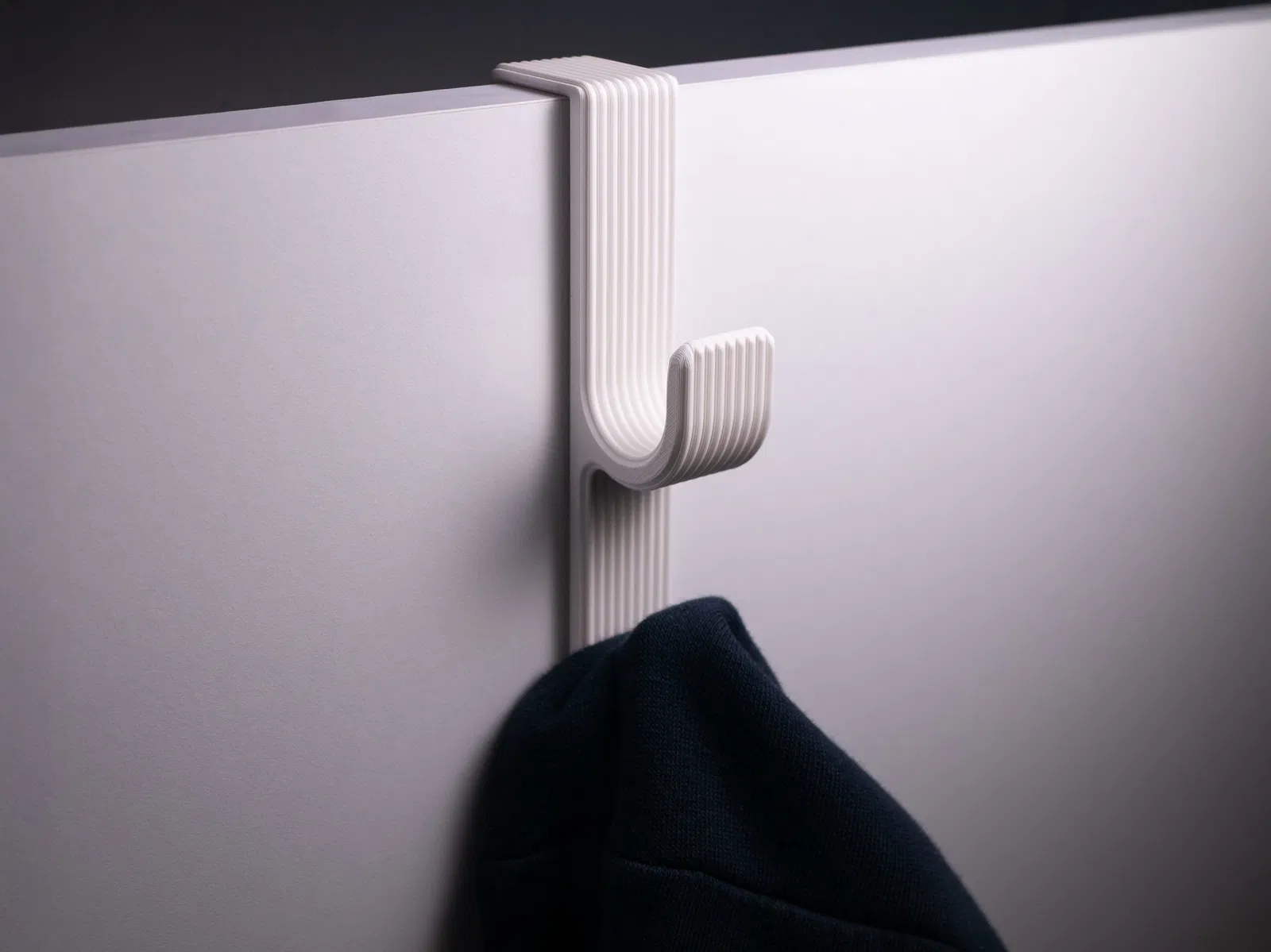 Mẫu Door Hook | Shower Wall Hook có 7 phiên bản từ 5–45mm, cộng thêm clearance 0.8mm (ví dụ “cửa 35mm” sẽ là 35.8mm). Mặt lưng phẳng 17.6mm để dán keo 2 mặt, chân chống trượt hoặc nỉ cho chắc.