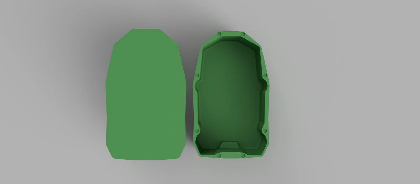 Nắp hộp khép chặt an toàn vào vỏ, có các khe cho nam châm 2,5 x 2 mm, nhưng nam châm là tùy chọn, vì chiếc hộp hoạt động tốt mà không cần chúng.