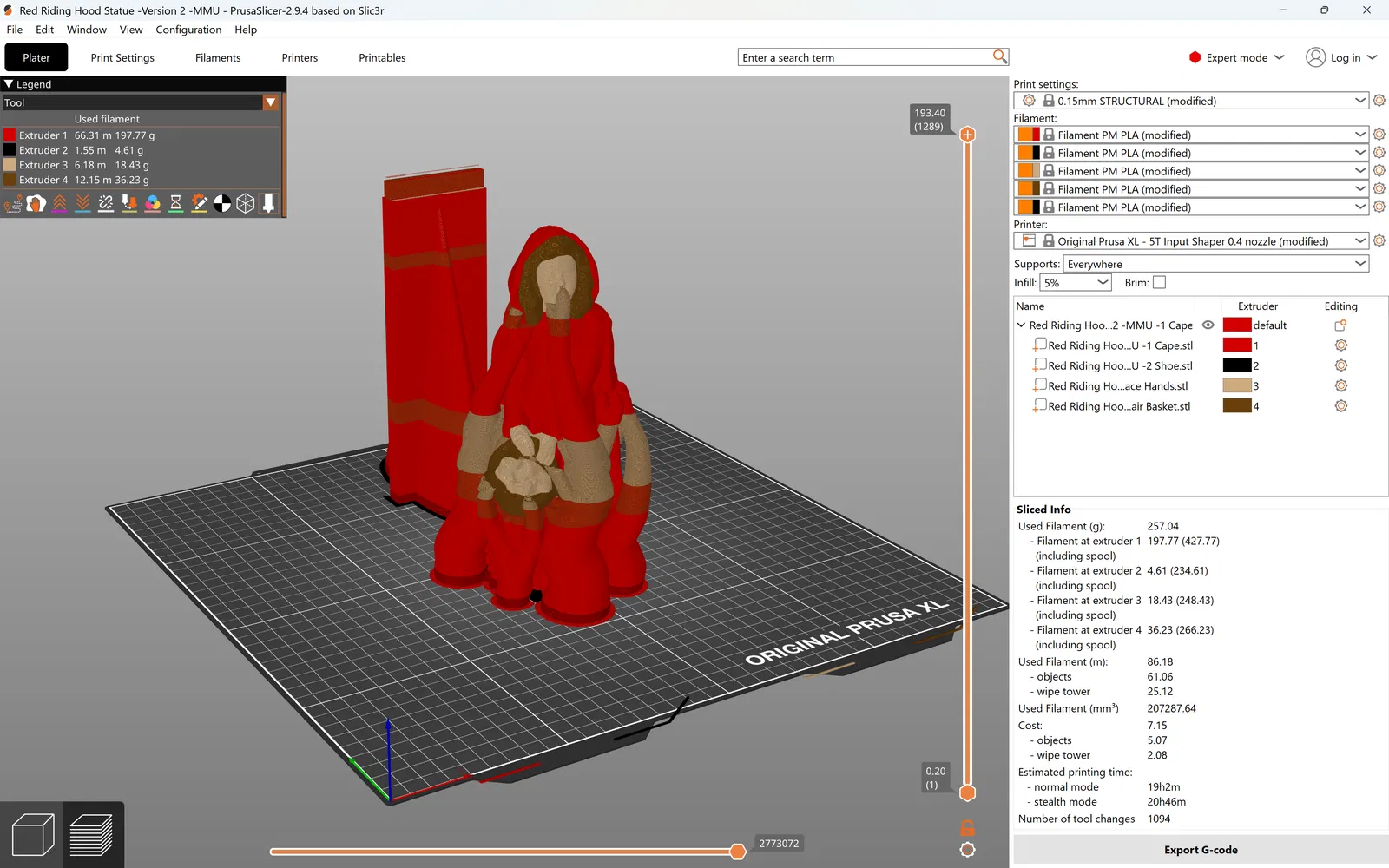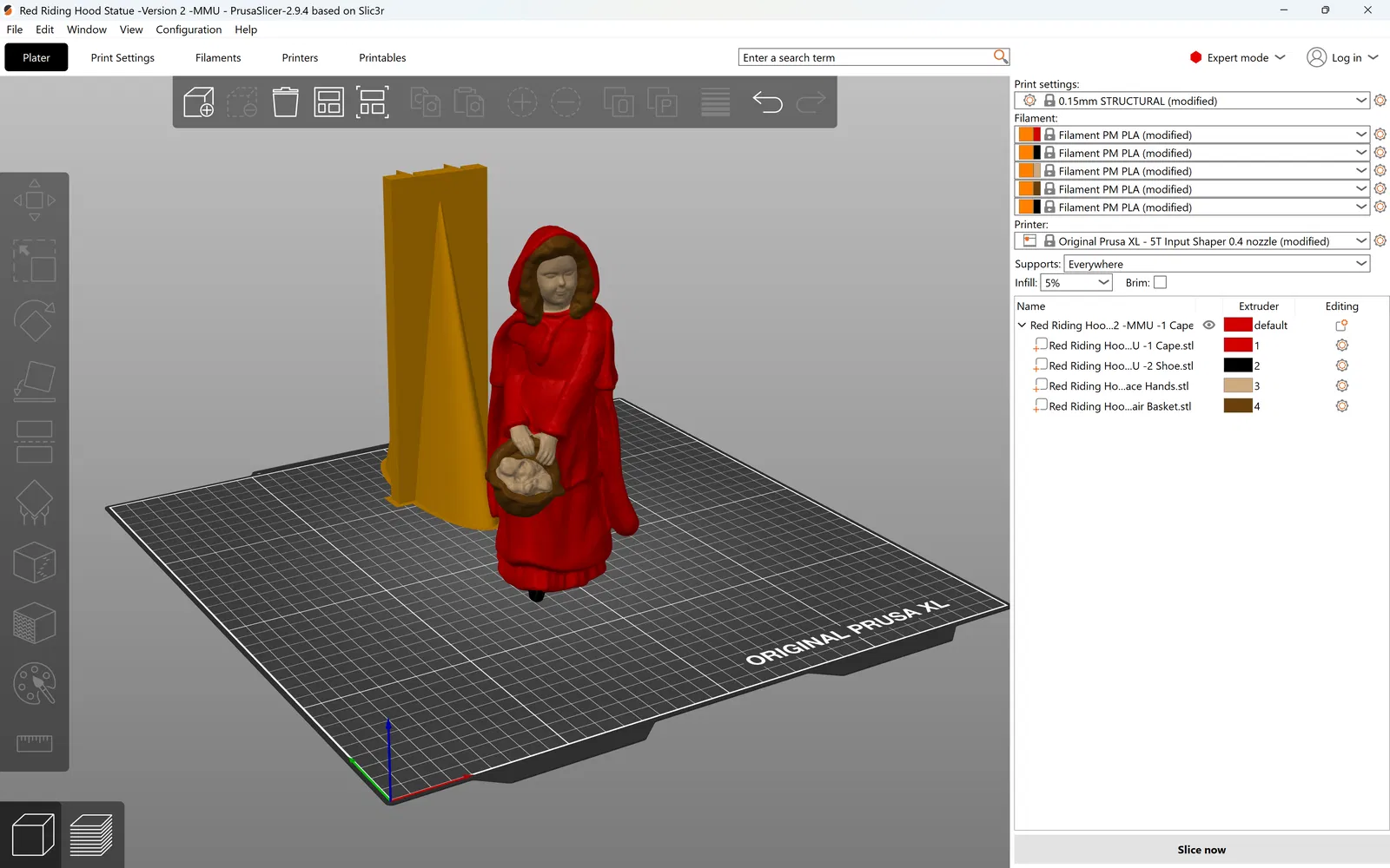 Mẫu tượng Red Riding Hood Statue gồm 2 phiên bản: bản 1 dành cho máy in 1 sợi filament; bản 2 (MMU) dành cho máy in multi material, phù hợp in nhiều màu/vật liệu.