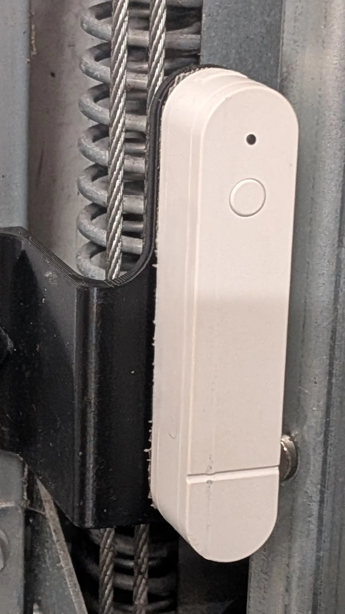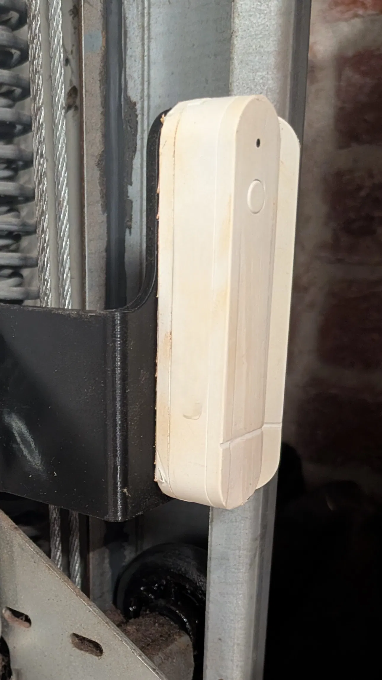 Đây là một ngàm/giá gắn (sensor mount) cho cảm biến cửa/cửa sổ IKEA Mygbett mới, tương thích Matter, dùng chung với cửa cuốn trần (overhead door) của Hörmann.
