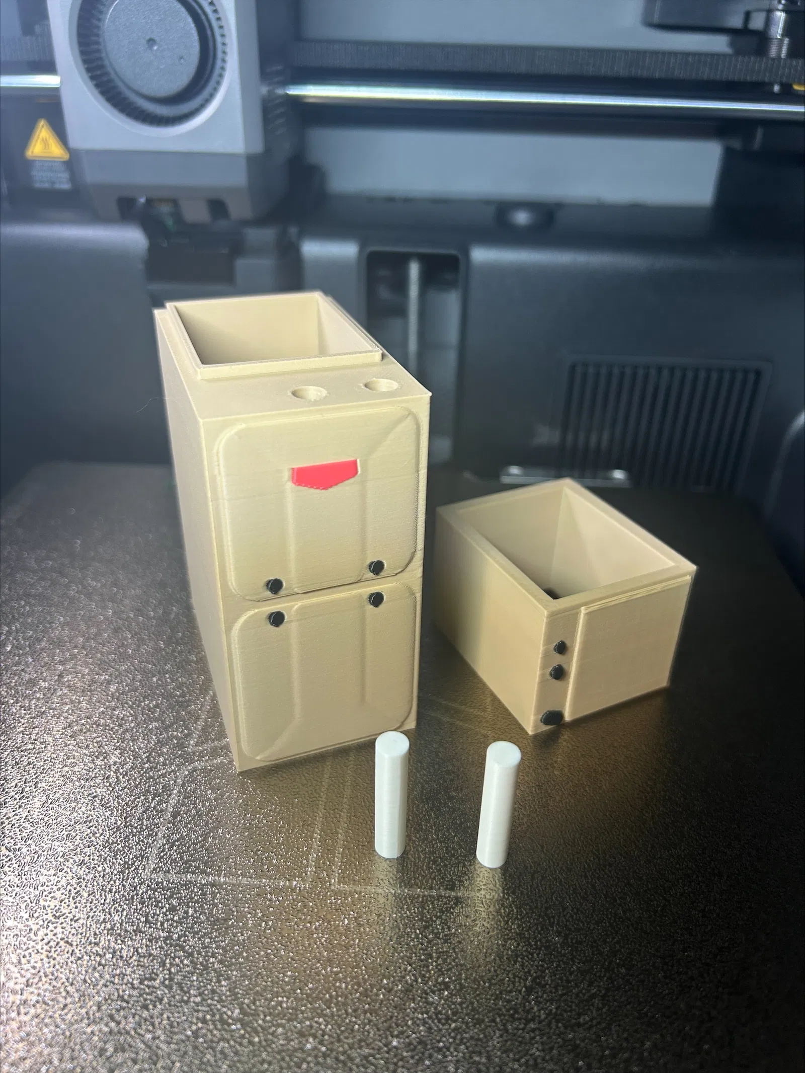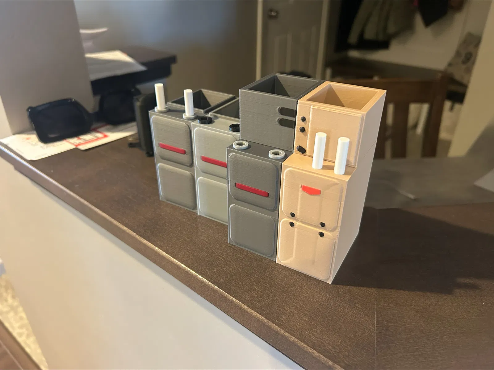 Mẫu HVAC Bryant Air Handler dạng desk organizer kiêm pen holder. Phần coil đặt trên nóc furnace và có thể dán cố định. Có tùy chọn in thêm ống intake và flue để tăng độ chi tiết cho mô hình.