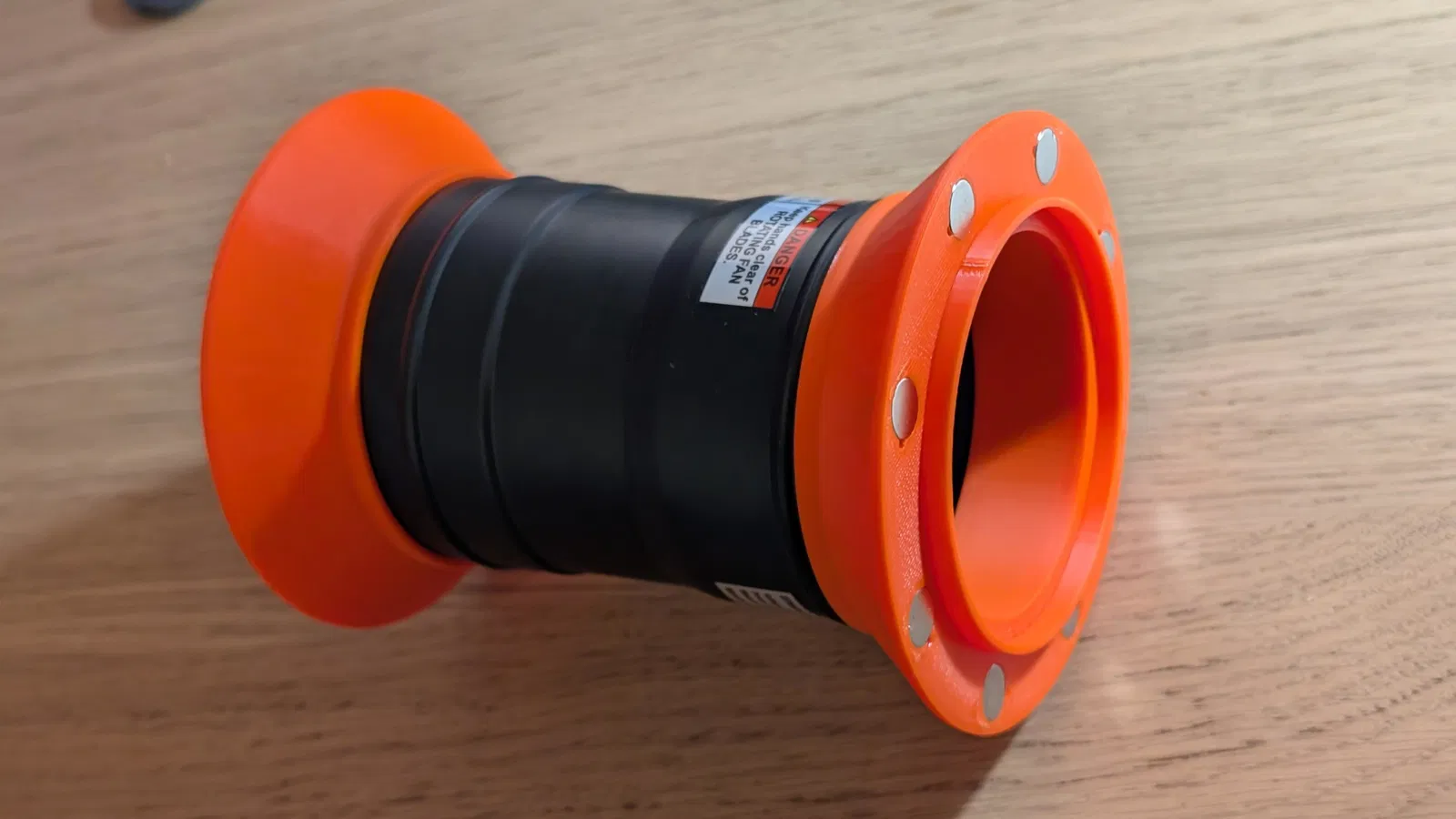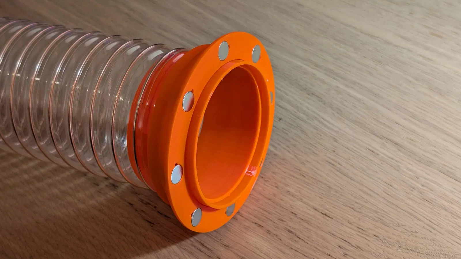 Đầu nối nam châm này giúp nối các đoạn ống PU 75mm và (tuỳ chọn) gắn thêm quạt ducted fan 75mm.