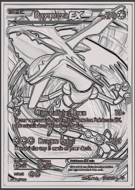 Mẫu Rayquaza EX TCG lấy cảm hứng từ thẻ bài Pokémon (Trading Card Game), phù hợp để in 3D trưng bày hoặc làm artwork theo phong cách card art.