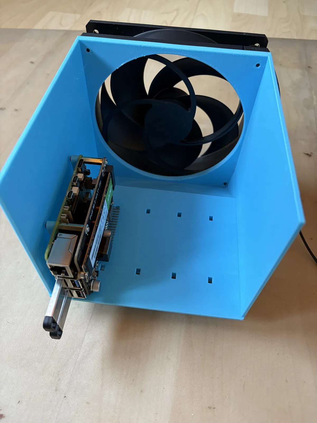Kệ (rack) nhỏ gọn tích hợp quạt 140mm, thiết kế để gắn tối đa 5 Raspberry Pi 5 cùng NVMe và POE-Head. Phù hợp dựng cluster/ceph, giúp thoáng khí và tối ưu tản nhiệt khi chạy tải lâu.