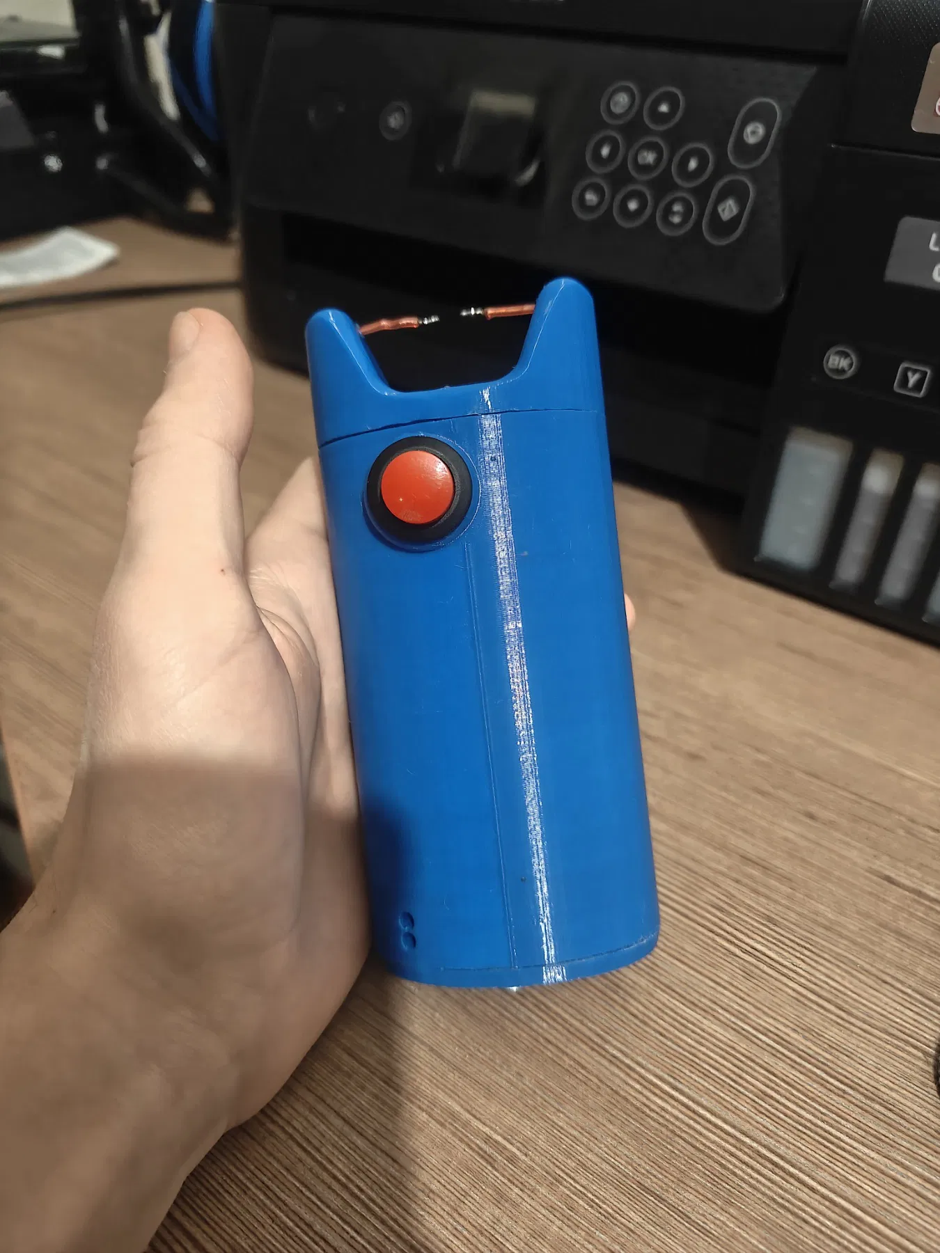 Hướng dẫn linh kiện cho mẫu Stun gun RUSSIA: sạc TP4056 Type-C, công tắc 10×15mm, nút 16mm, dùng module 400kv hoặc khuyến nghị module 1 triệu v (vừa khít), 1 pin 21700 (Liitokala), 2 bu-lông M3x30 và 4 bu-lông M2x10.
