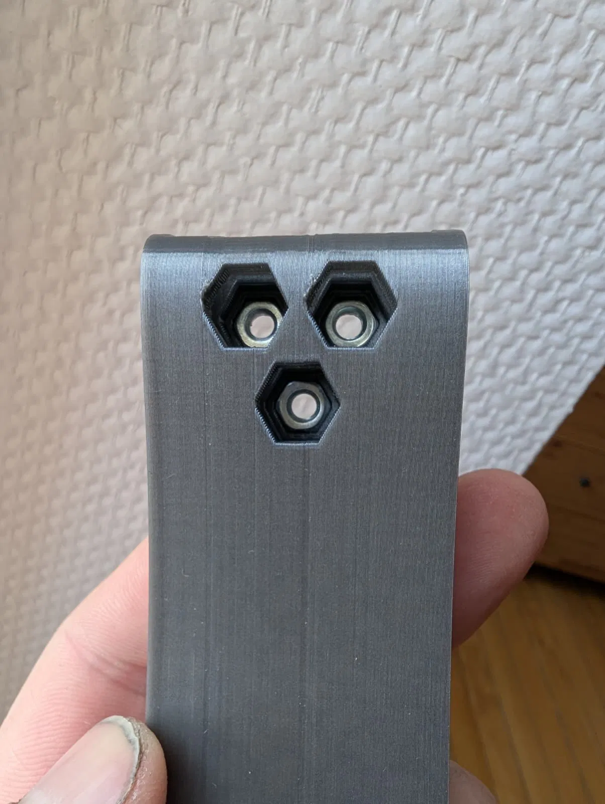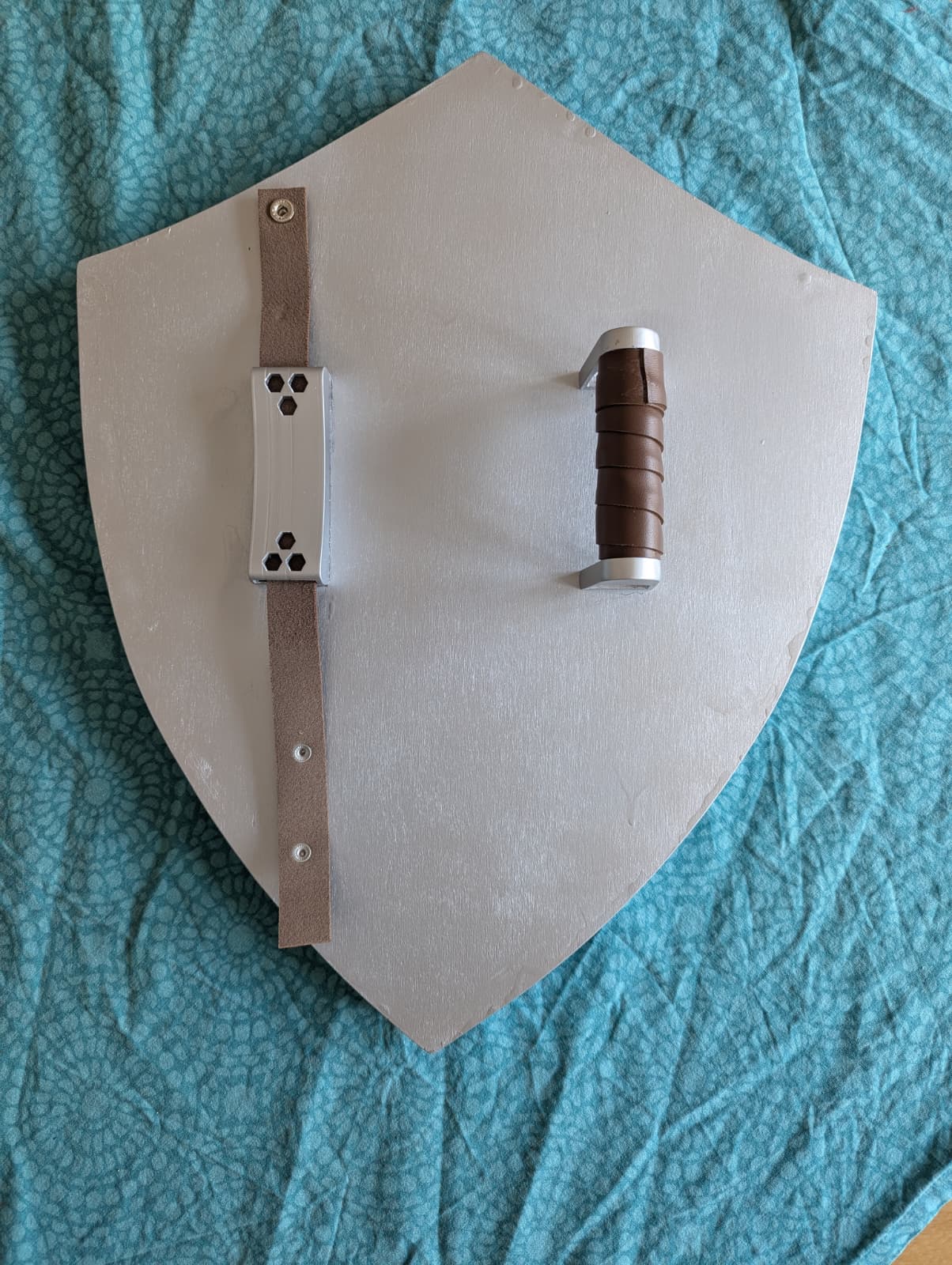 Mình làm cái arm mount và tay cầm đơn giản này cho bản của khiên Hylia. Bạn cần vài con tán (nuts) và bu lông (bolts) M4 để bắt chúng lại với cái khiên. Mình dùng dây PU-leather rộng 25mm và nút bấm (snap fastener) cho phần dây đeo tay (armstrap), bạn cũng có thể dùng loại dây nhỏ hơn. Phần tay cầm cũng được quấn PU-leather.