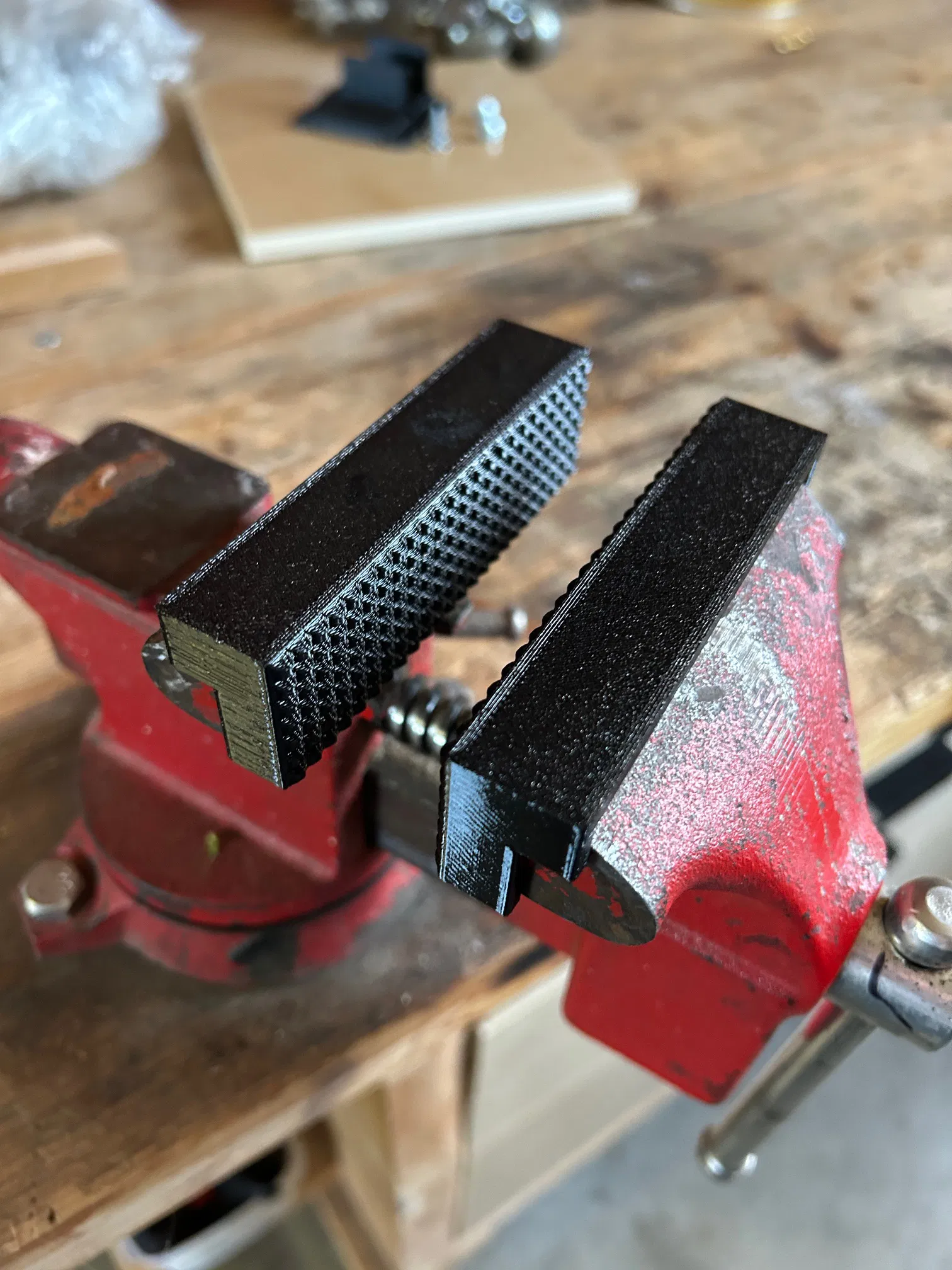 Miếng bọc ngàm ê-tô 3 1/2". Cố định tại chỗ bằng 4 nam châm 8x3 mm. Mặt trước có vân knurling. In bằng TPU-95A để đạt kết quả tốt nhất.