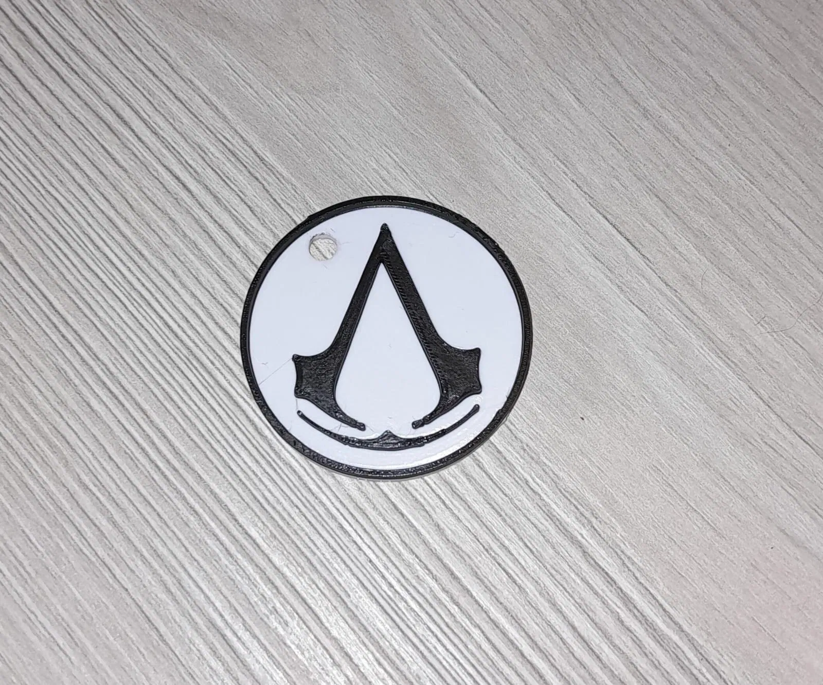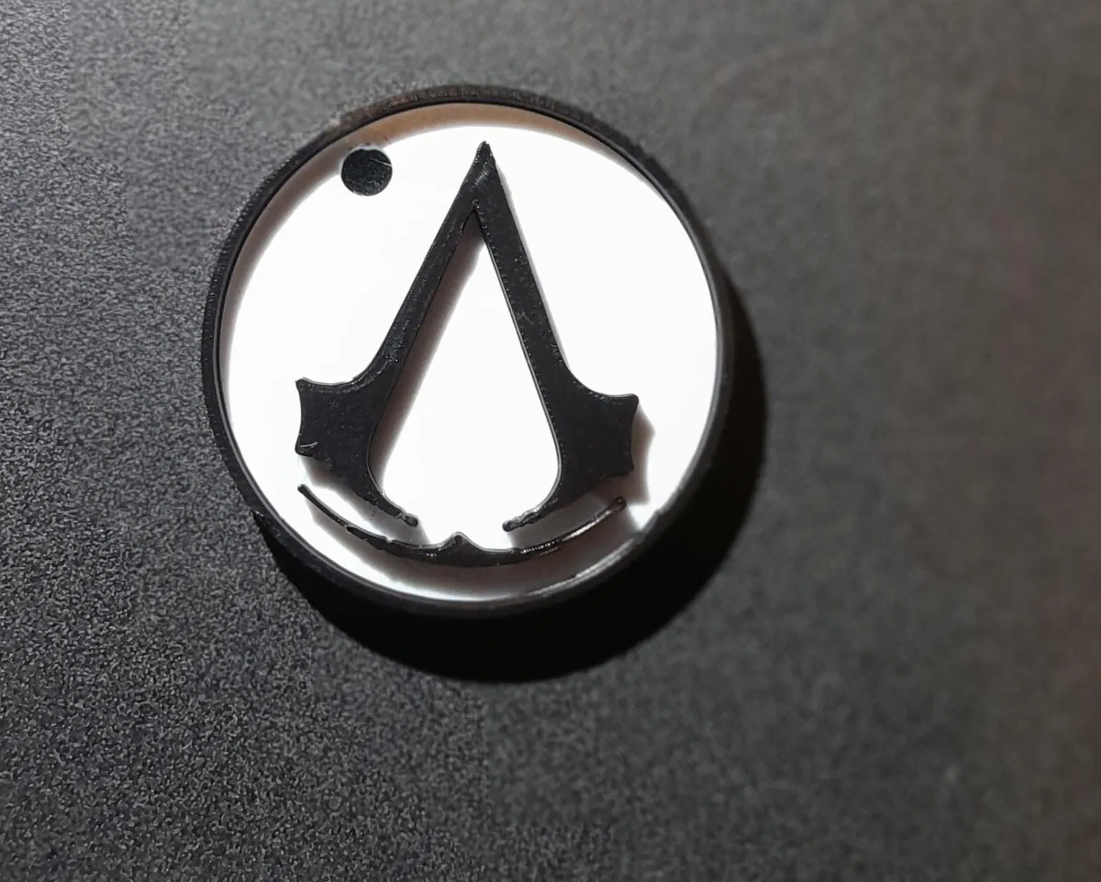 Mẫu móc khóa lấy cảm hứng từ series game Assassin's Creed. Tác giả tự thiết kế và in bằng PLA, không cần supports/raft, infill 15%, layer height 0.2. Kích thước bán kính 39mm, dày 4mm.