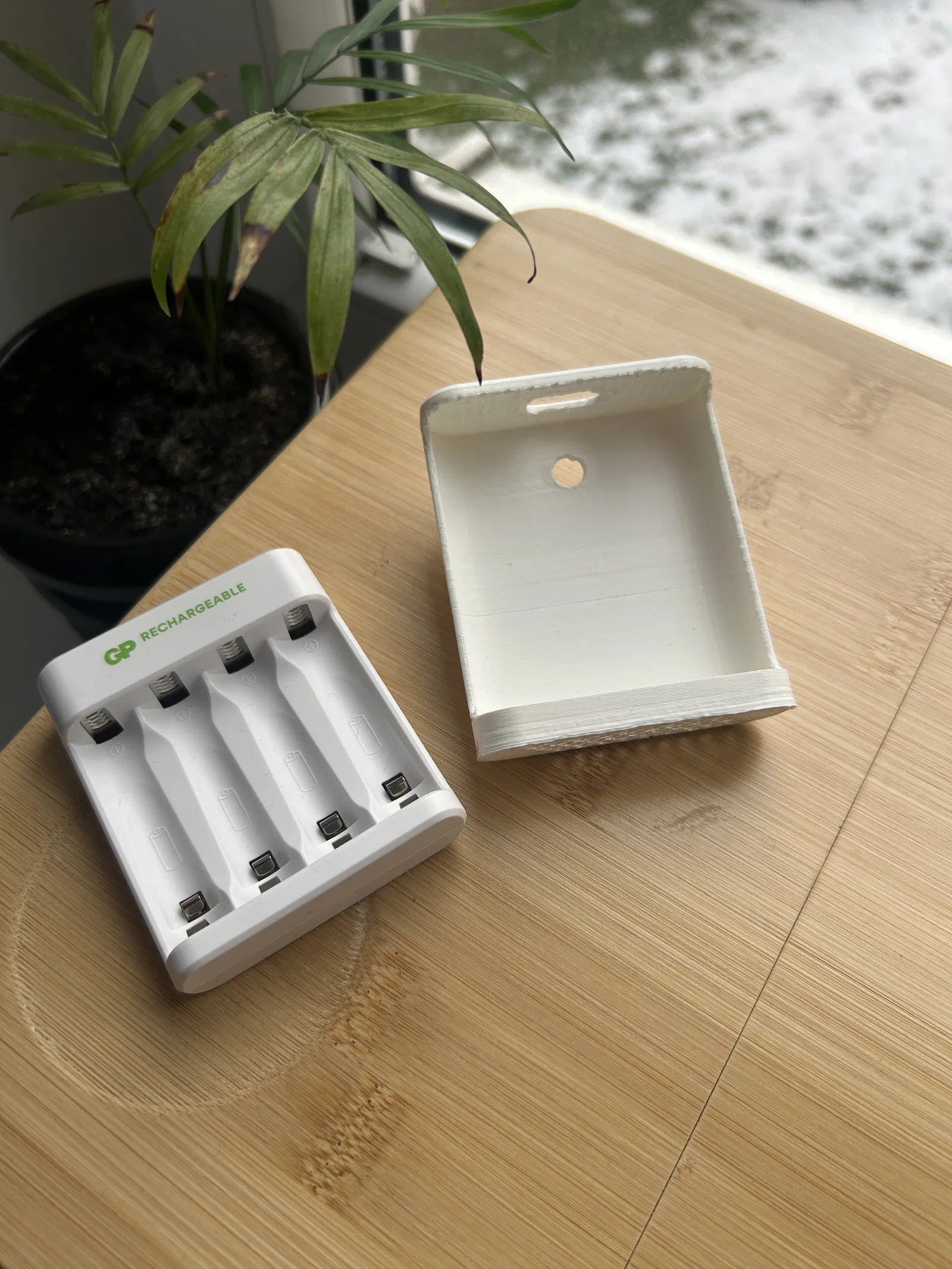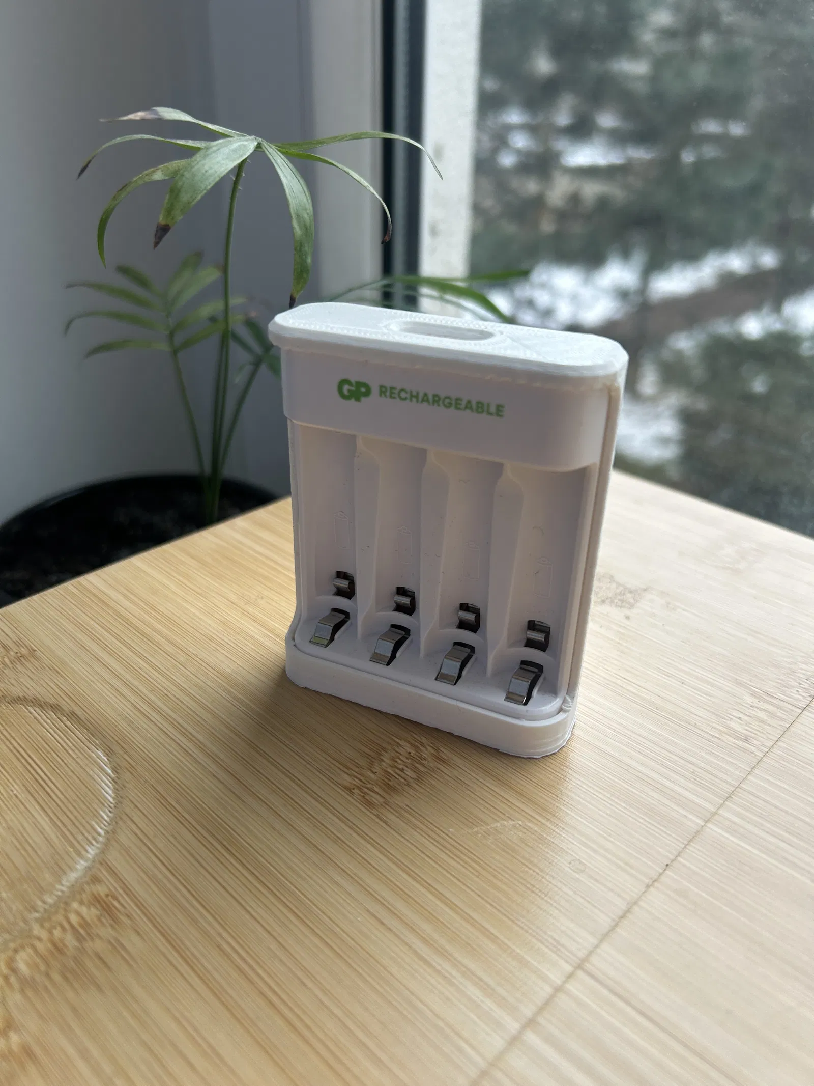 Một mẫu wall mount đơn giản, gọn gàng cho bộ sạc GP Batteries GP Rechargeable E421, được thiết kế riêng để gắn lên hệ pegboard IKEA SKÅDIS.