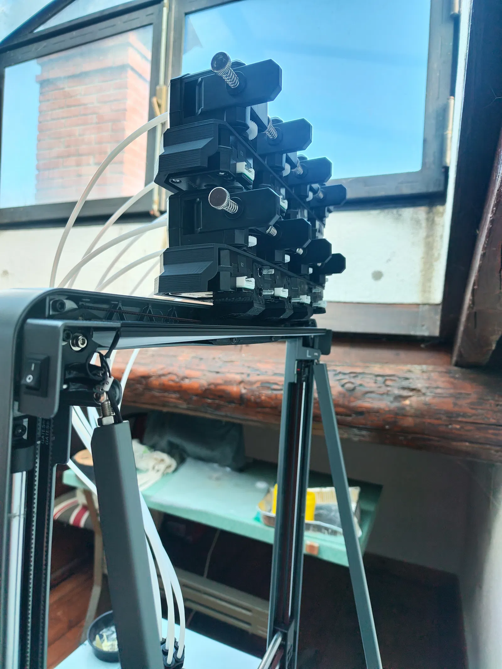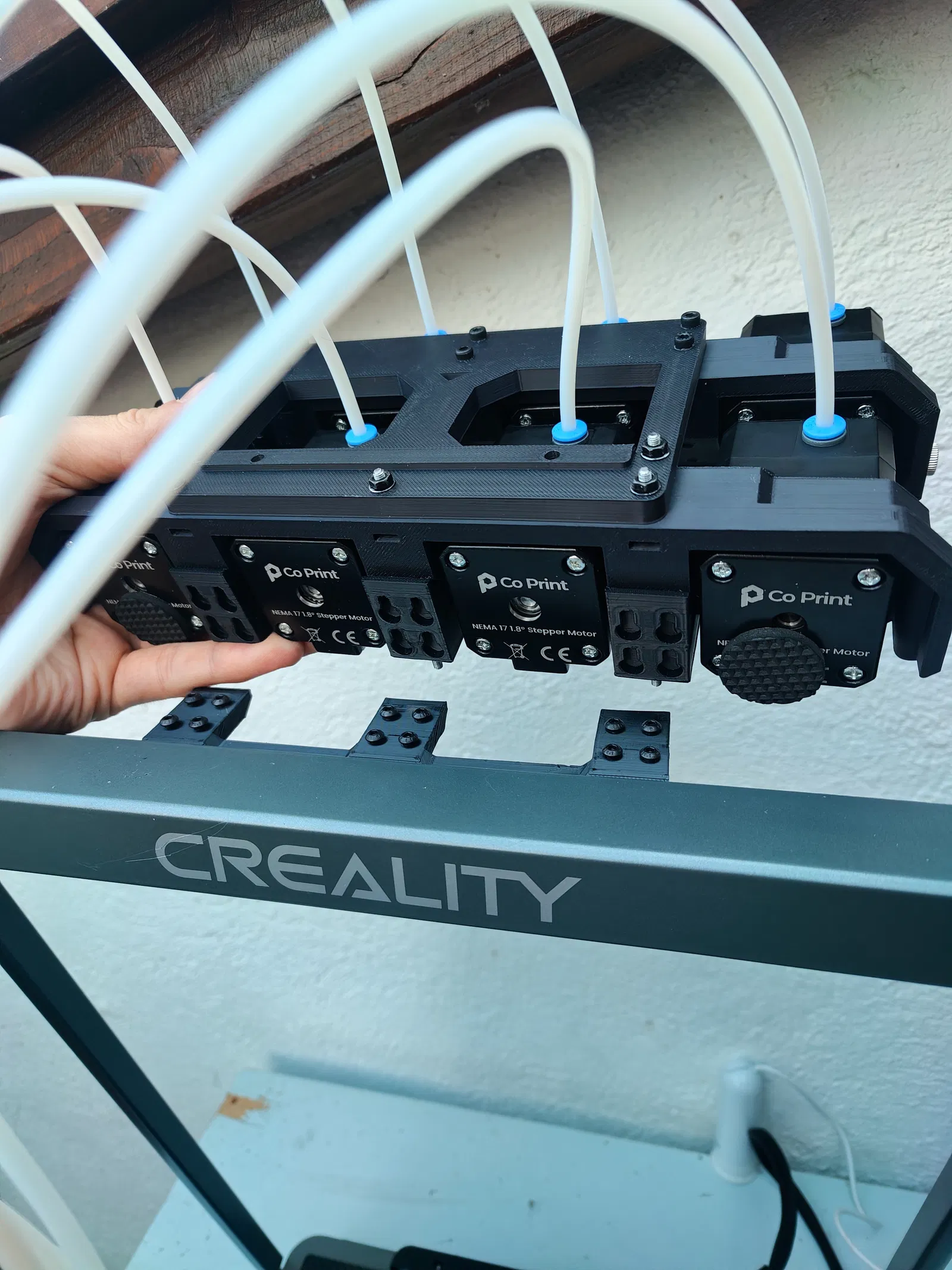 - Nối cụm gá 4-extruder CX-1 của CoPrint vào 3x "part 2" bằng ty ren. (có thể cắt ty bằng Dremel nếu muốn, chủ yếu để đẹp)