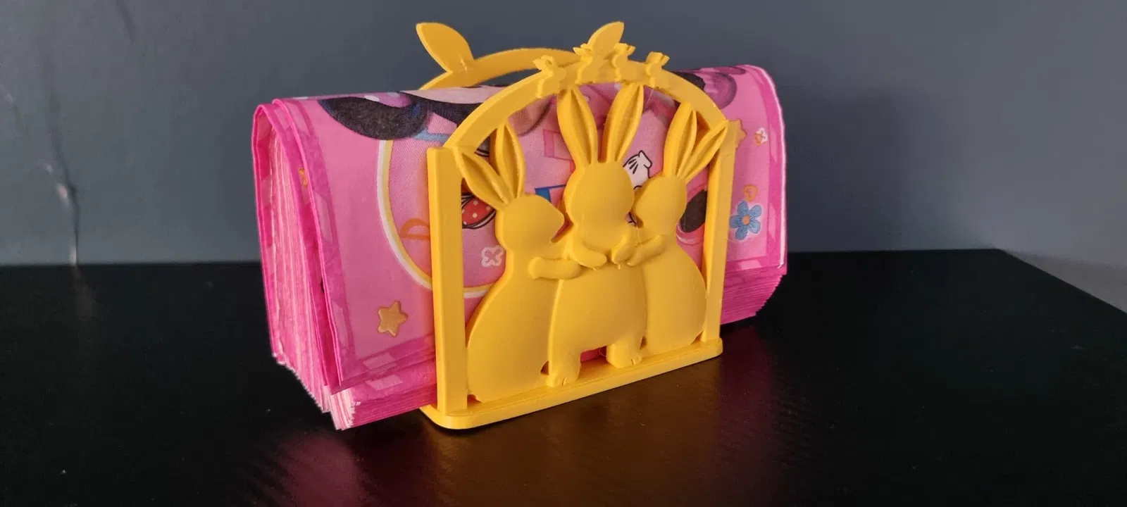 Giá đựng khăn ăn trang trí cho bàn tiệc Easter, có họa tiết thỏ dễ thương, giúp bàn gọn gàng và nổi bật không khí lễ hội. Bạn có thể in với bất kỳ màu nào tùy gu.