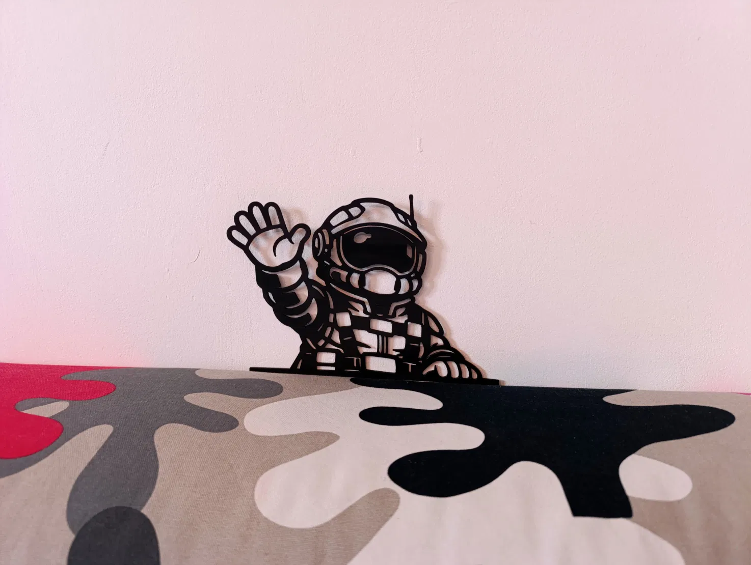 Mẫu Wall Art treo tường, hợp treo phía sau ghế sofa để làm điểm nhấn cho không gian. Thiết kế lấy cảm hứng từ nhân vật Pioneer trong game Satisfactory, phù hợp decor góc gaming.