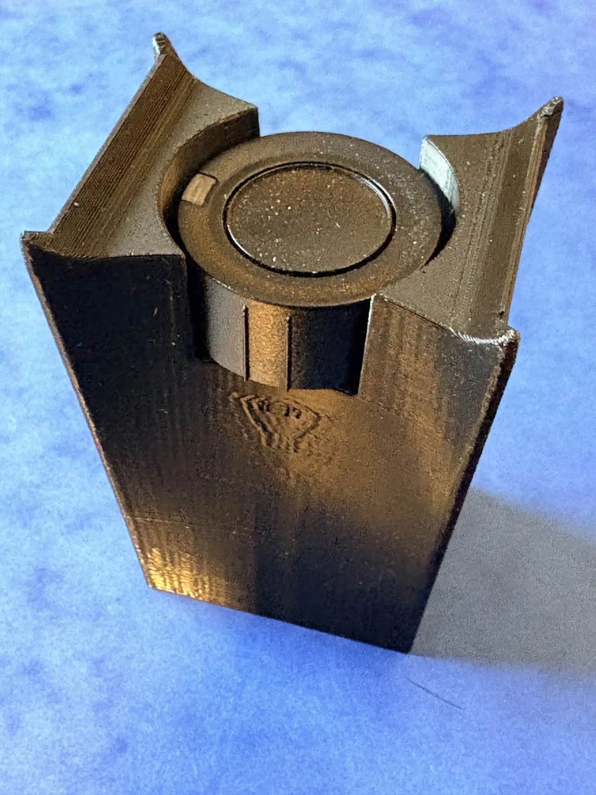 Một adapter gắn vào hộc để ly nhỏ dành cho bộ phát (transmitter) ô tô Hörmann 12V. Mẫu này làm cho Tesla Model 3 đời cũ (trước bản facelift).