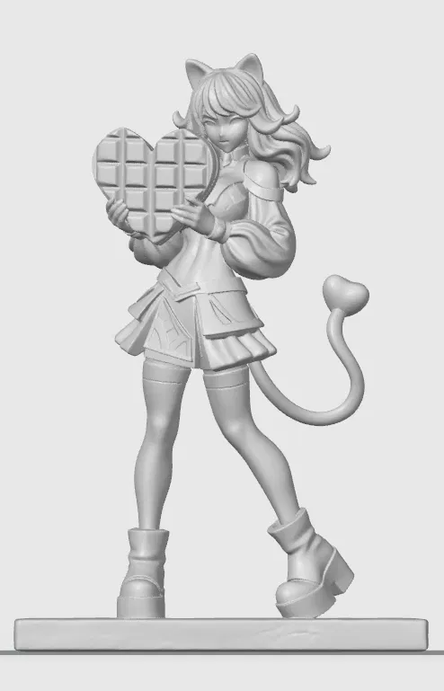 Mẫu figurine cô gái mèo chủ đề Valentine số 10, lấy cảm hứng từ ngày 14/2 – dịp để bày tỏ yêu thương bằng hoa, sô-cô-la và thiệp viết tay. Phù hợp in 3D làm quà tặng, trang trí lãng mạn.