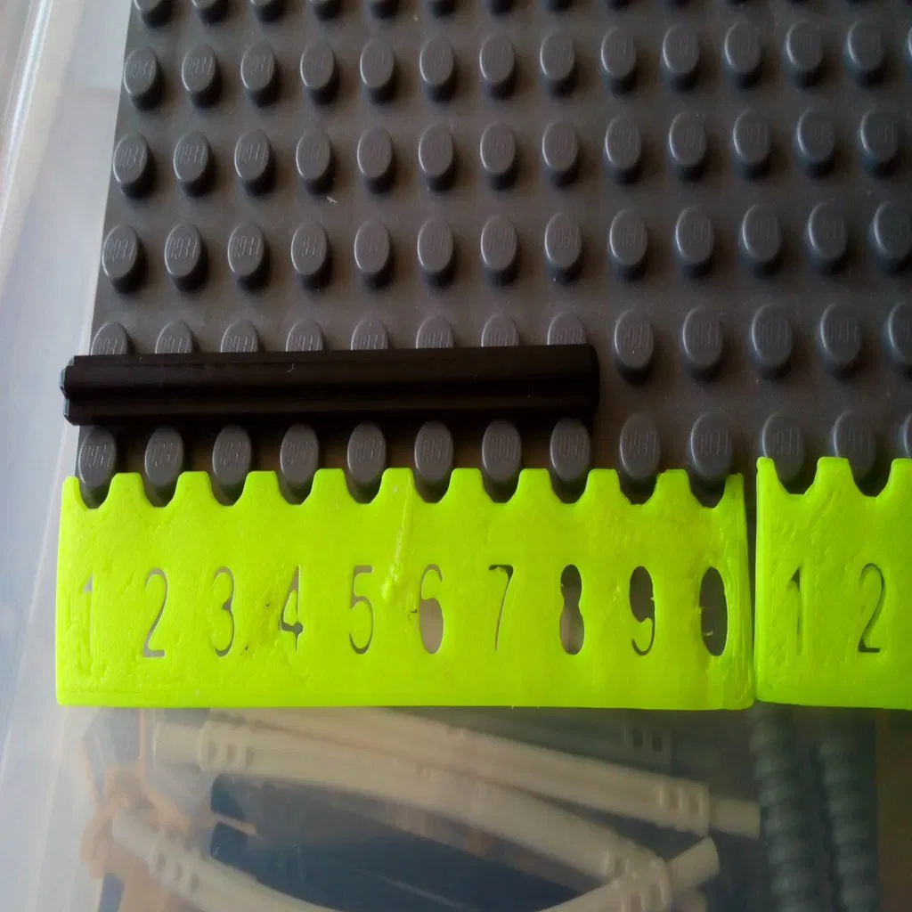Mẫu Lego Ruler là thước đo để đếm số stud trên gạch LEGO hoặc đo chiều dài rod. STL là bản thước 10 brick, cao 0.6mm để in 3 lớp ở layer height 0.2mm; có thể chỉnh file scad để đổi độ dày/độ dài.