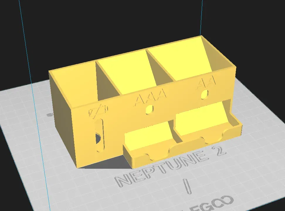 Tôi luôn thấy những bộ phân phối pin này có dung tích quá lớn (tôi không chắc bạn cần pin mới bao nhiêu lần, với tôi là mỗi vài tháng, tôi chỉ cần một cái gì đó để chứa tối đa 10 viên pin mà đi kèm trong các gói lớn. Mô hình gốc từ thingiverse đã giải quyết vấn đề này, nhưng tôi vẫn thấy nó có một cái hộp quá lớn cho những viên pin đã sử dụng. Khi tôi cần học cách chỉnh sửa các tệp stl, tôi đã tận dụng cơ hội để giảm kích thước nó.