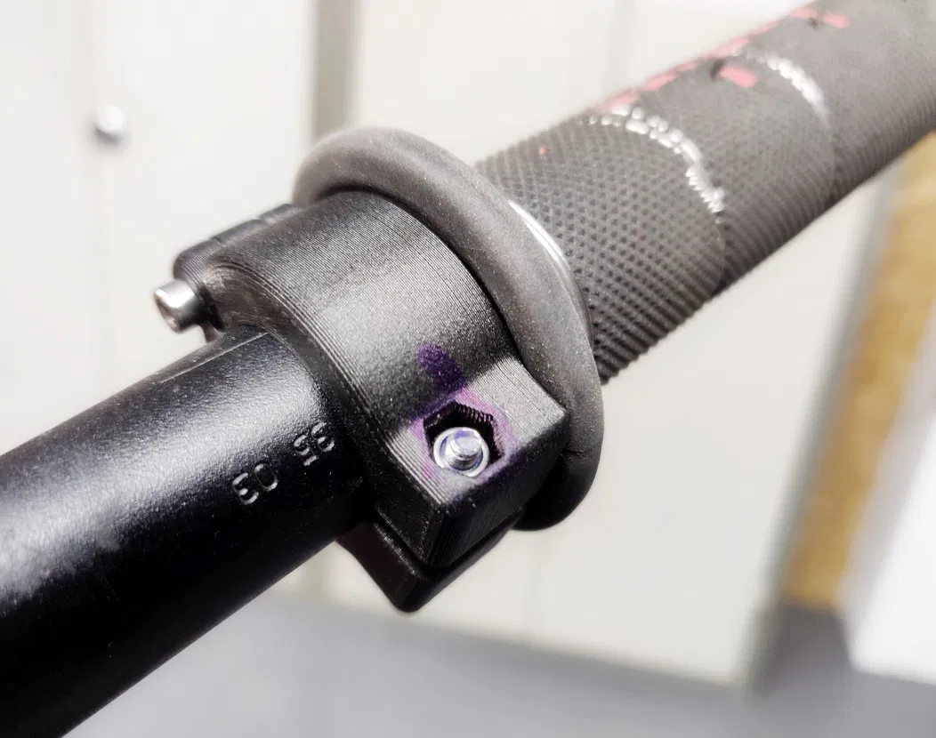 GripLock cho bao tay mềm Domino A010 bên trái (ghi-đông 22mm) giúp chống trượt vào trong và chống xoay trên ghi-đông, cố định bao tay đúng vị trí. Khuyến nghị in PETG, 0.4 nozzle, support Organic.