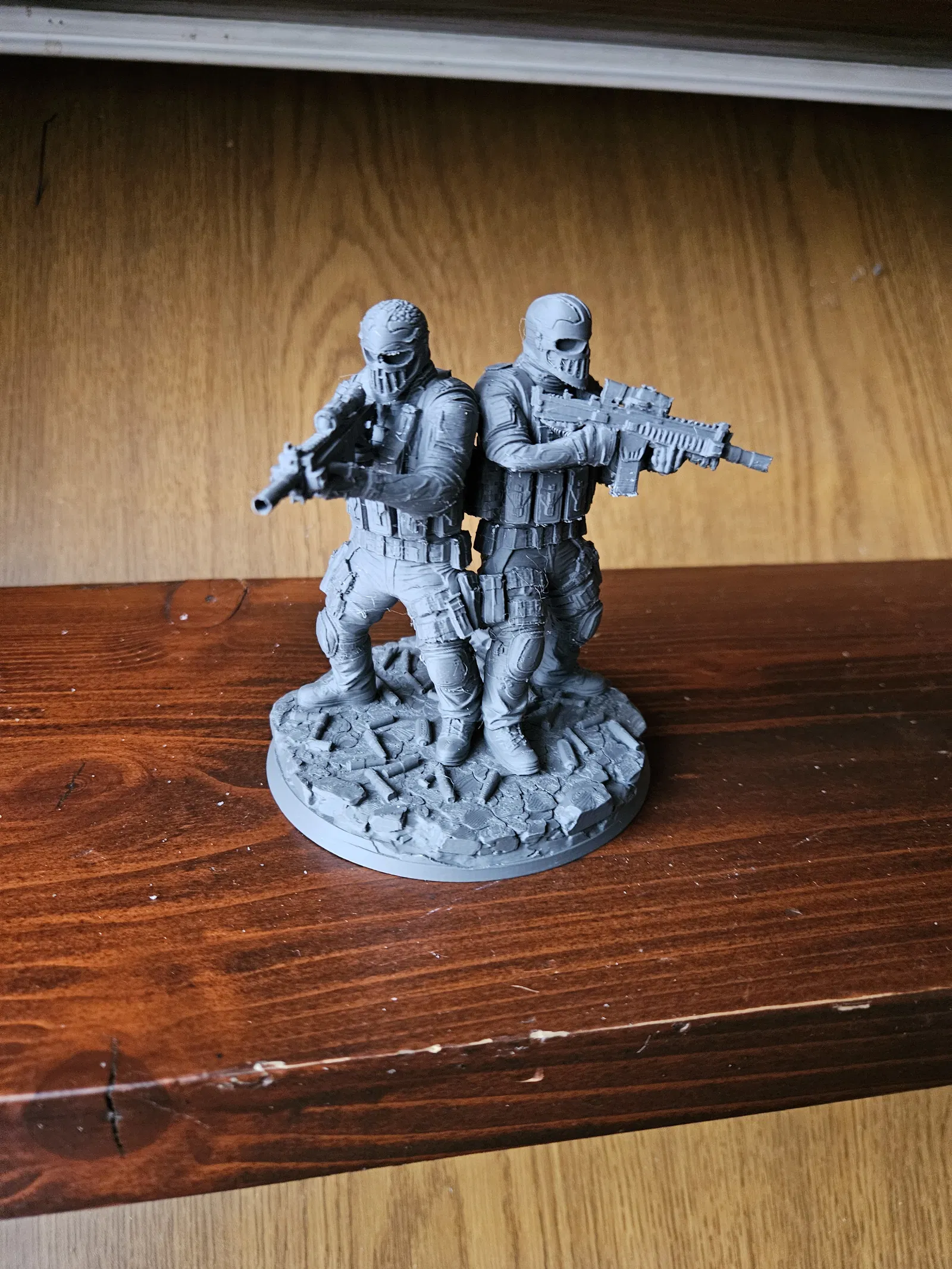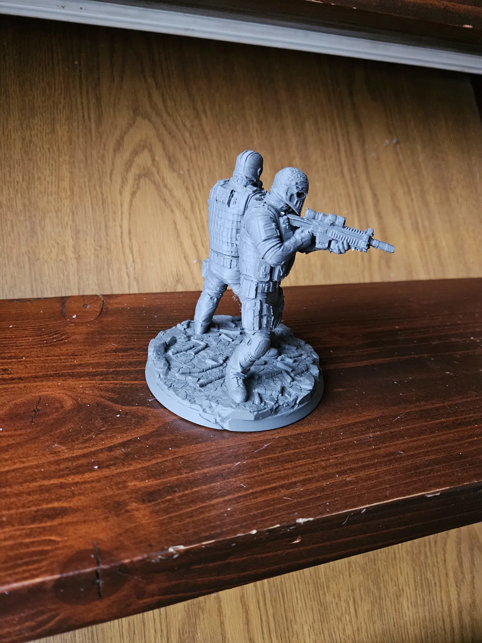 Mẫu figure Army of Two lấy cảm hứng từ game về hai lính đánh thuê Tyson Rios và Elliot Salem. Khuyến nghị in dựng đứng, tốc độ 50% (tùy máy), layer height 0.08–0.16 mm, dùng PLA/matte PLA, infill 15–20%.