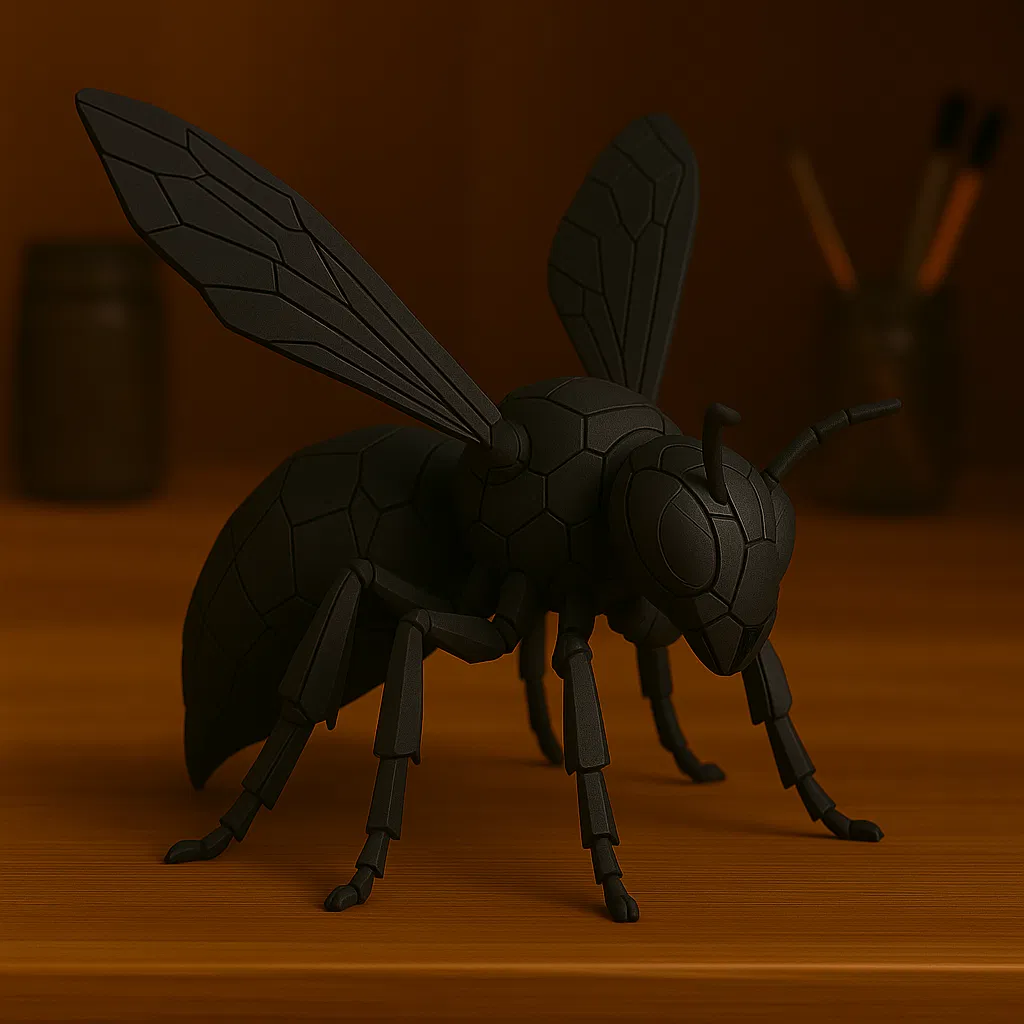 Tượng Ong Bắp Cày Đen Hình Học (Geometric Black Wasp Sculpture)