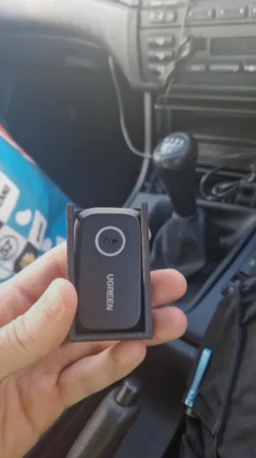 Mẫu giá đỡ/ốp dành cho UGREEN AUX Bluetooth receiver, giúp cố định bộ thu Bluetooth gọn gàng trong xe. Có thể gắn bằng băng keo hai mặt; khuyến nghị in PETG/ABS để tránh PLA bị mềm, biến dạng khi trời nóng.