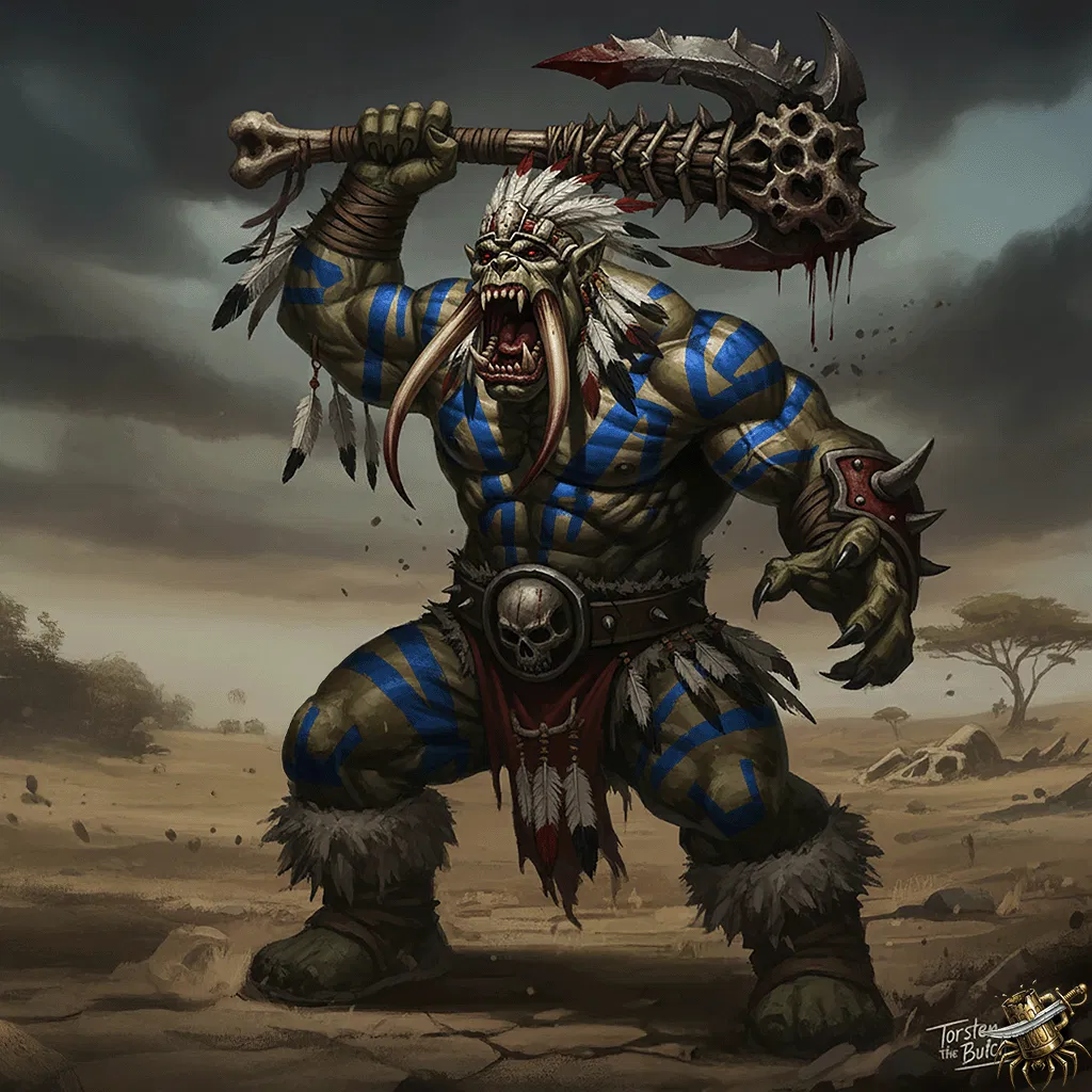 Mấy anh này là trái tim cuồng nộ, hoang dã nhất của cuộc săn. Họ chẳng màng thép hay an toàn; họ tự trang điểm bằng máu của con mồi vừa hạ, rồi lao vào với một cú xung phong điên dại—vừa như lời cầu nguyện, vừa như lời hứa của bạo lực. Họ là cỗ máy cho cơn đói của Grolnok, thuần túy và chẳng có gì phức tạp. Họ sẵn sàng đổi mạng để hạ một mục tiêu “đáng giá” hơn mà không cần nghĩ ngợi, tin rằng tủy của chính họ rồi cũng sẽ nằm trong mẻ Juice tiếp theo của Shaman.