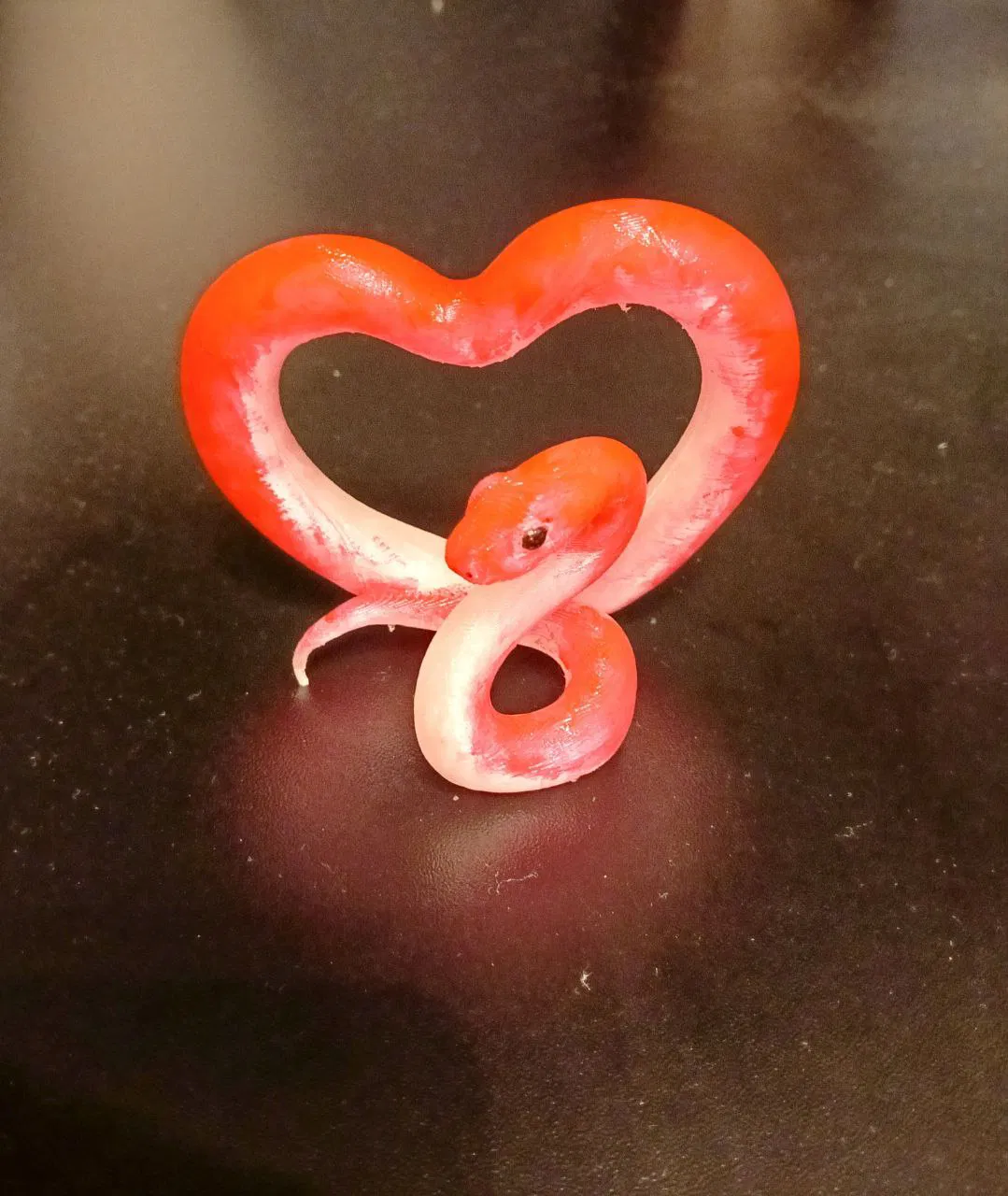 Mẫu “Змейка любви” dành cho Ngày Lễ Tình Nhân. Tác giả thử in bằng plastic trong suốt, sau đó tự sơn lại bằng sơn để hoàn thiện. Phù hợp làm đồ trang trí theo chủ đề rắn và trái tim.