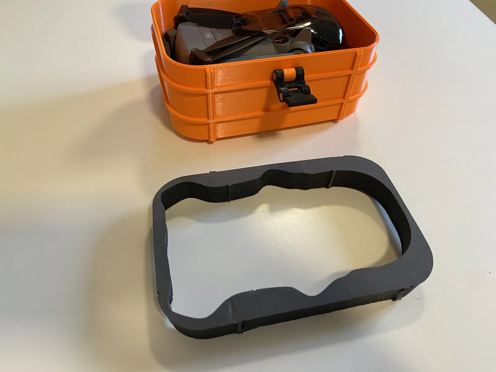 Dựa trên thiết kế của Jiří Velan, bản hộp DJI Mini 5 Pro này thay lớp lót in TPU bằng mút cao su cắt laser. Tạo mặt cắt 2D, xuất DXF để cắt mút 20 mm, xếp 3 lớp và dán thêm mút 2 mm cho đáy/nắp.