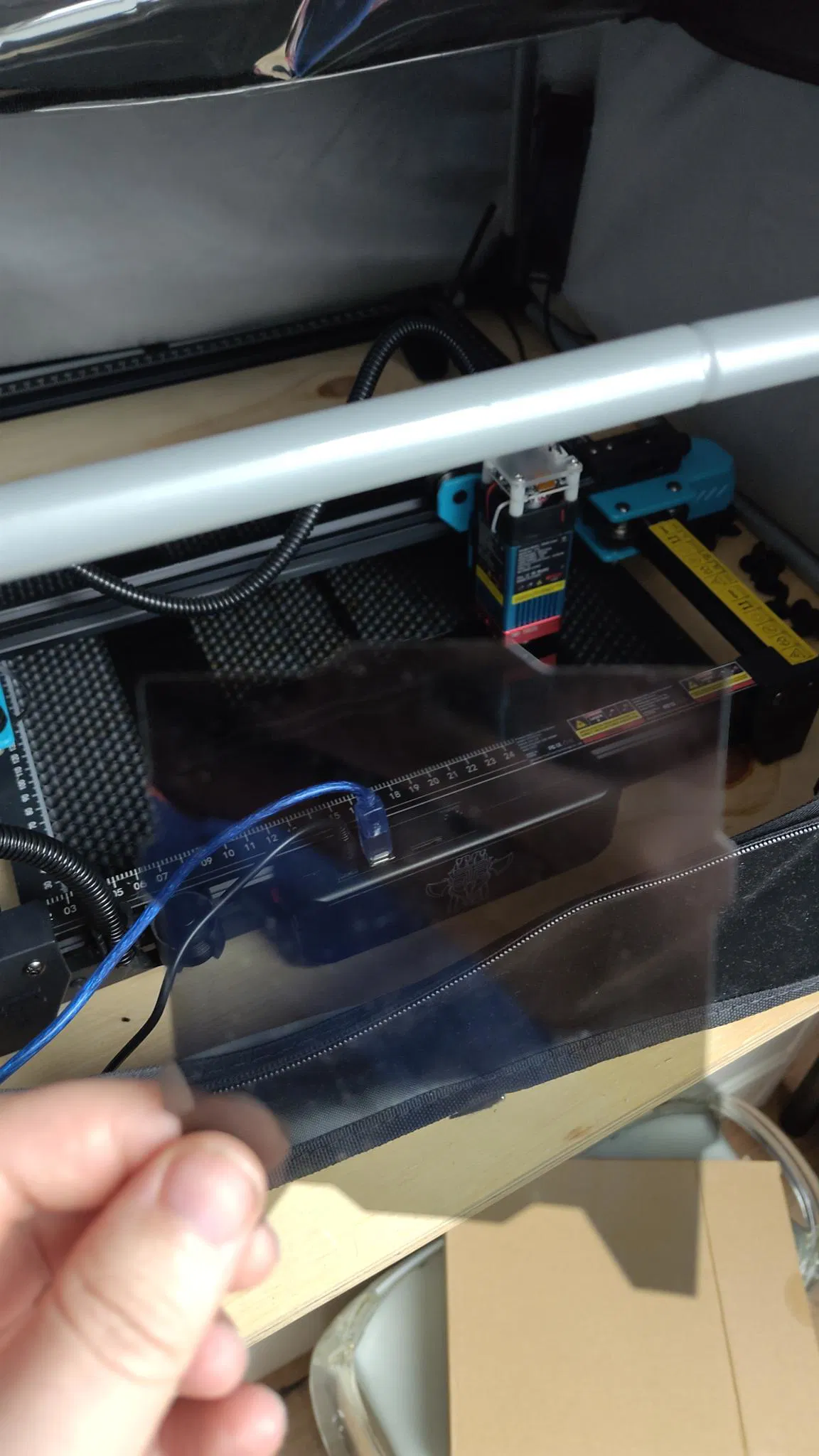 Mình dùng diode laser 5W, nhưng bạn cũng có thể dùng plotter, hoặc in STL ra rồi tự cắt bằng dao. (nhưng cắt laser thì dễ hơn và mình chưa test bản 3D print)